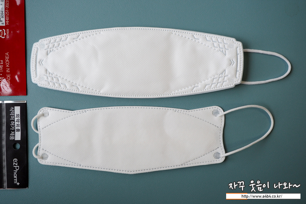 KF94 마가핏 마스크 디자인은 가로 삼단접이식 3D스타일 마스크 디자인을 보여줍니다. 사진과 같이 마스크 가로폭이 상당히 길어 보이는데요. 이 부분은 '(3/3) 마스크 사이즈 실측 및 비교'에서 자세하게 다룹니다.