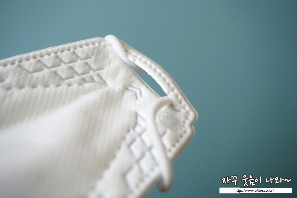 KF94 마가핏 마스크 특대형에는 원형의 귀걸이끈이 마스크 후면에 부착되어 있습니다. 이어밴드 탄력은 보통 수준으로 다른 제품에 비해 두툼해 상대적으로 귀에 부담이 적습니다.