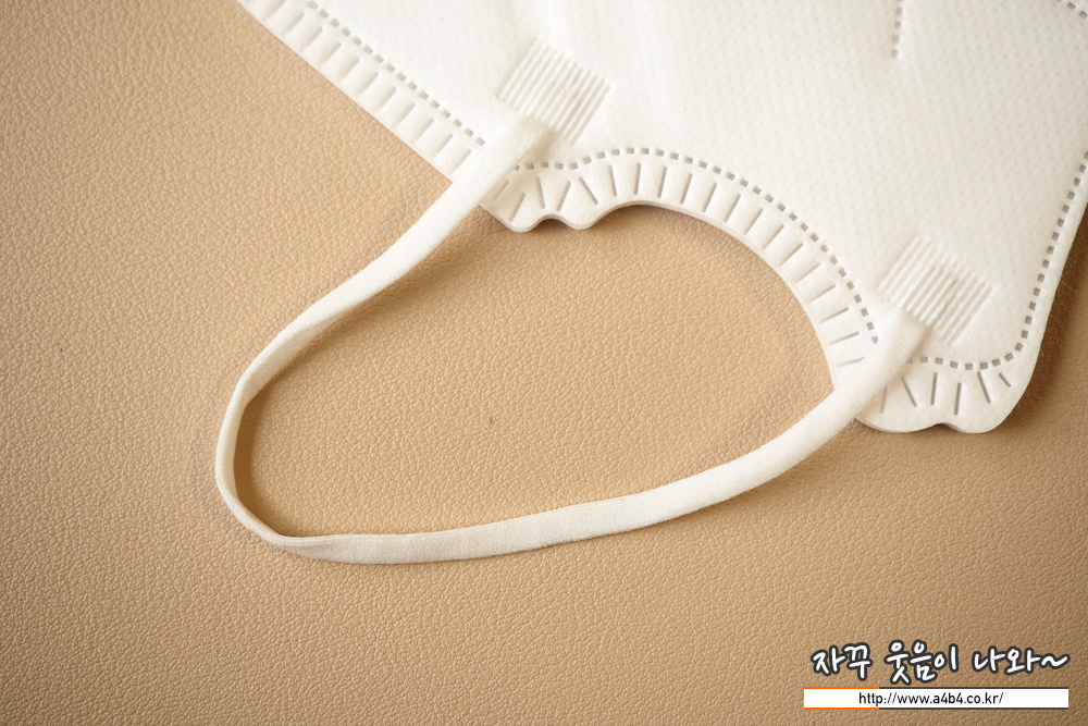 찐마스크에는 고급 새부리타입 마스크에서 주로 사용하는 납작한 귀걸이끈이 사용되었습니다. 둥근 모양의 귀걸이끈에 비해 착용감도 편하고 귀에 무리도 적은 타입입니다. 귀걸이끈 탄력은 조금 강한 수준입니다.