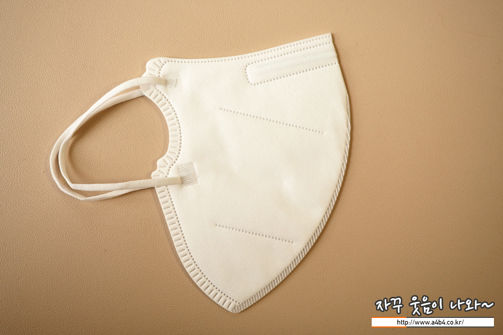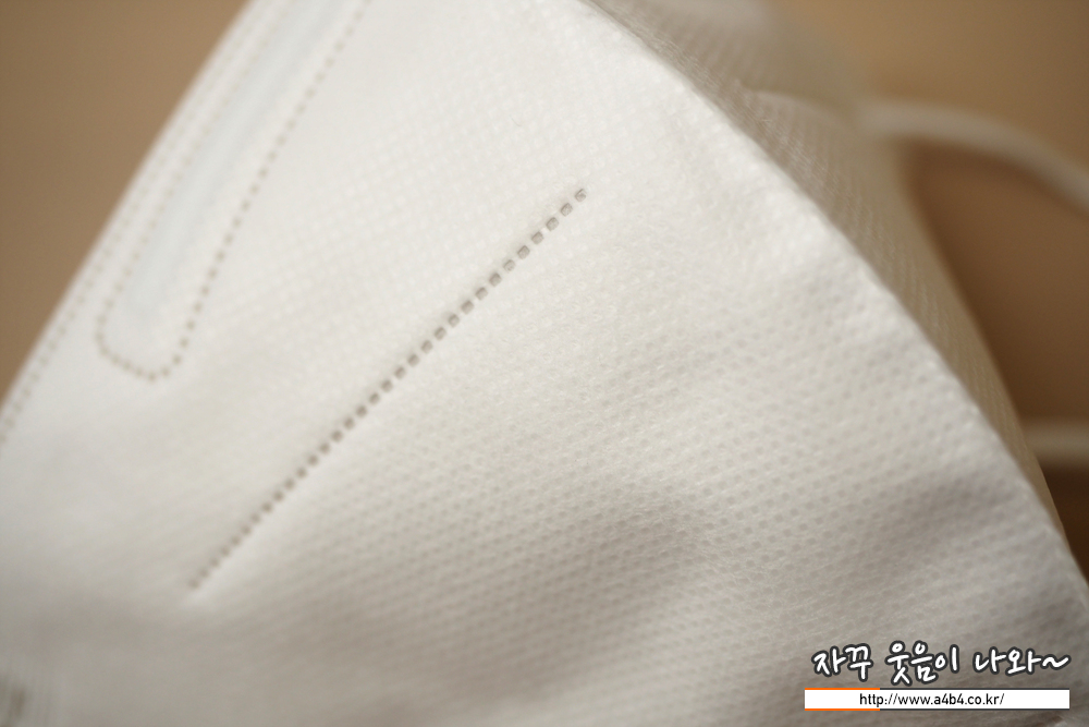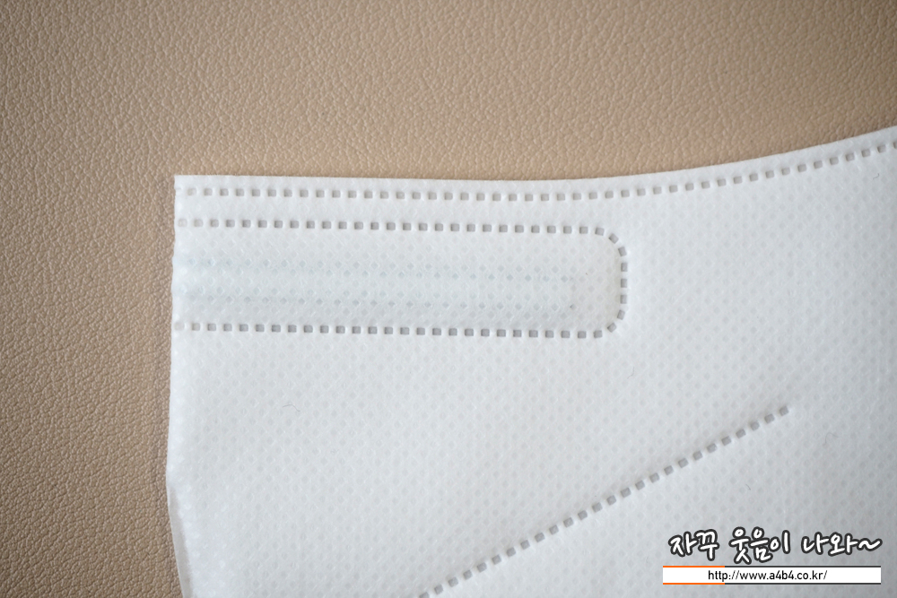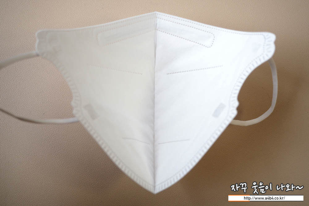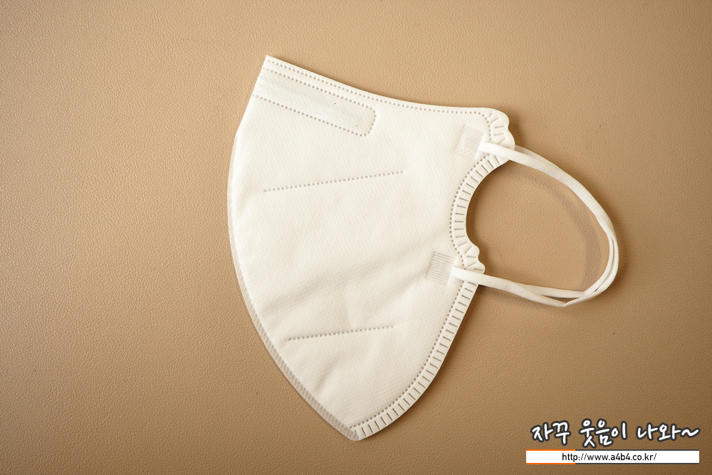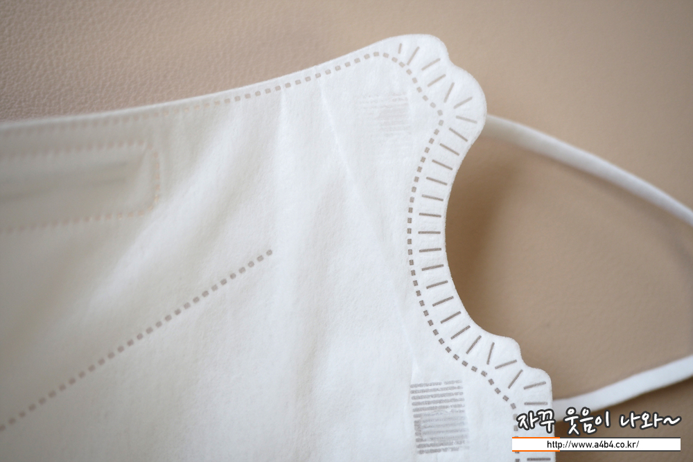 마스크 겉감은 약한 토트퍼리된 부직포가 사용되었으며 감촉은 조금 드라이한 타입입니다. 두께는 얇은 타입이지만 착용감과 착용핏은 하드한 타입입니다. 다만 마스크가 얇다보니 숨은 깊게 쉬면 부직포에서 소리 나면서 들락날락 합니다.