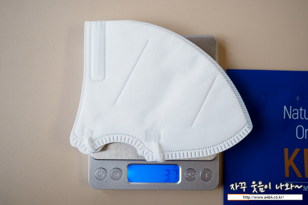 KF94 내추럴키스 마스크 대형 중량은 3.7그램으로 대형 새부리형 마스크로는 가벼운 타입의 제품입니다.