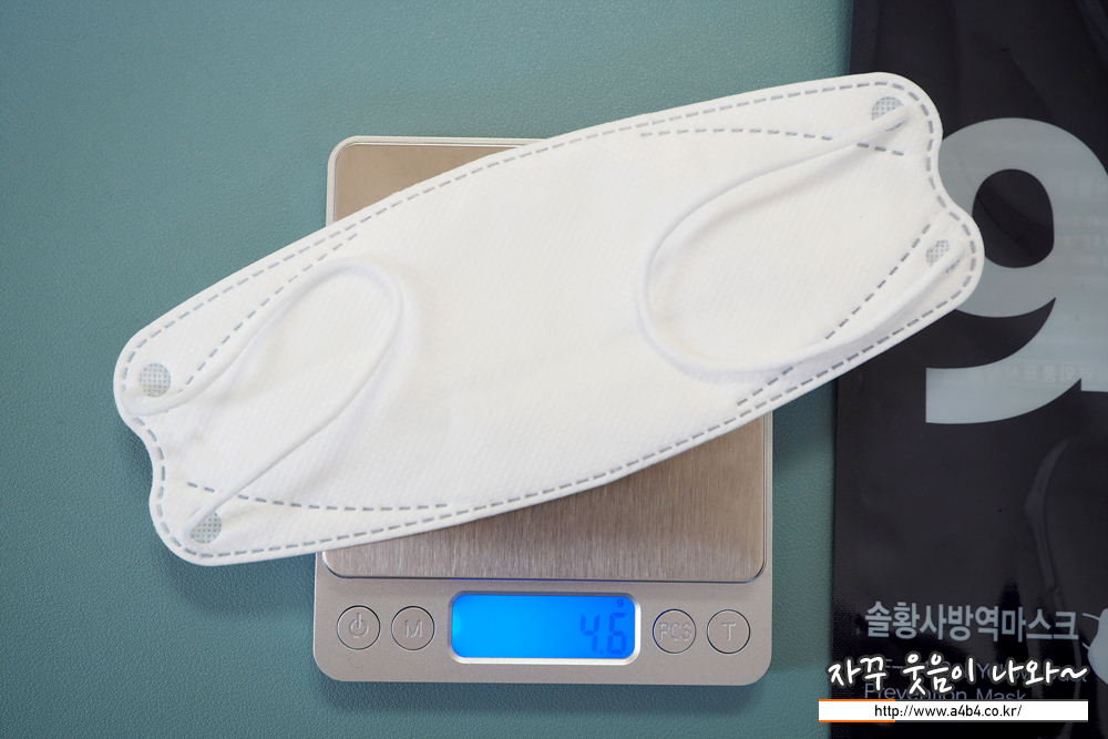 마스크 중량은 4.6그램으로 일반 KF94 대형마스크 중량입니다.