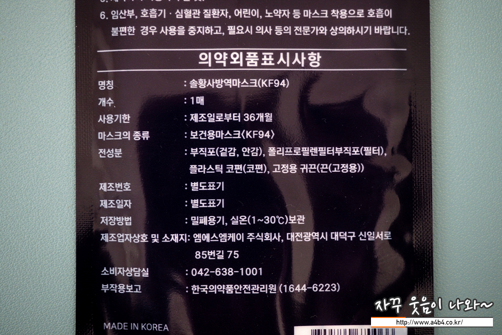 마스크에 사용된 필터나 부직포의 원자재와 이어밴드 등의 부자재 원산지는 국내산인지 중국산인지 확인은 못했네요.