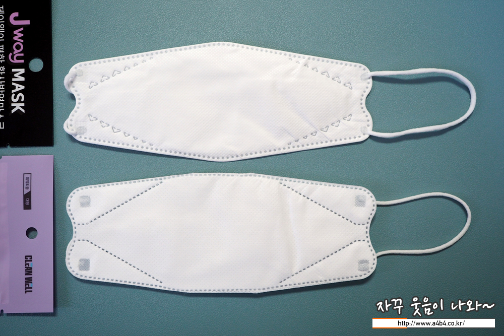 제이웨이 마스크 디자인은 가로 삼단접이식 입체형 디자인을 보입니다. 마름모 스타일의 디자인으로 타사 제품에서도 쉽게 볼 수 있는 디자인입니다. 요 부분은 글 끝부분에서 설명합니다.