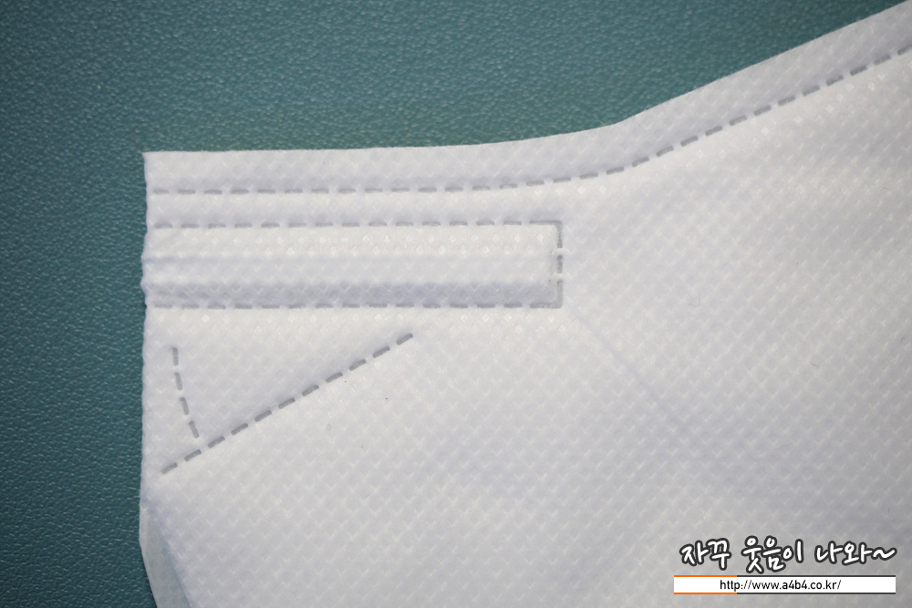 마스크 겉감은 패턴처리된 약간 매끈한 감촉의 부직포가 적용 되었습니다.