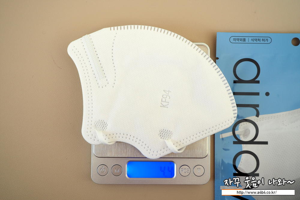 에어데이즈 마스크 대형 무게는 4.4그램으로 대형사이즈 새부리형 마스크와 비교해서 조금 가벼운 제품입니다.