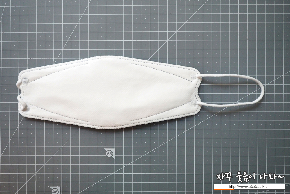 마스크 모양은 일반적인 가로 삼단접이식 입체혀 마스크 타입으로 일반적으로 쉽게 볼 수 있는 디자인을 보입니다.