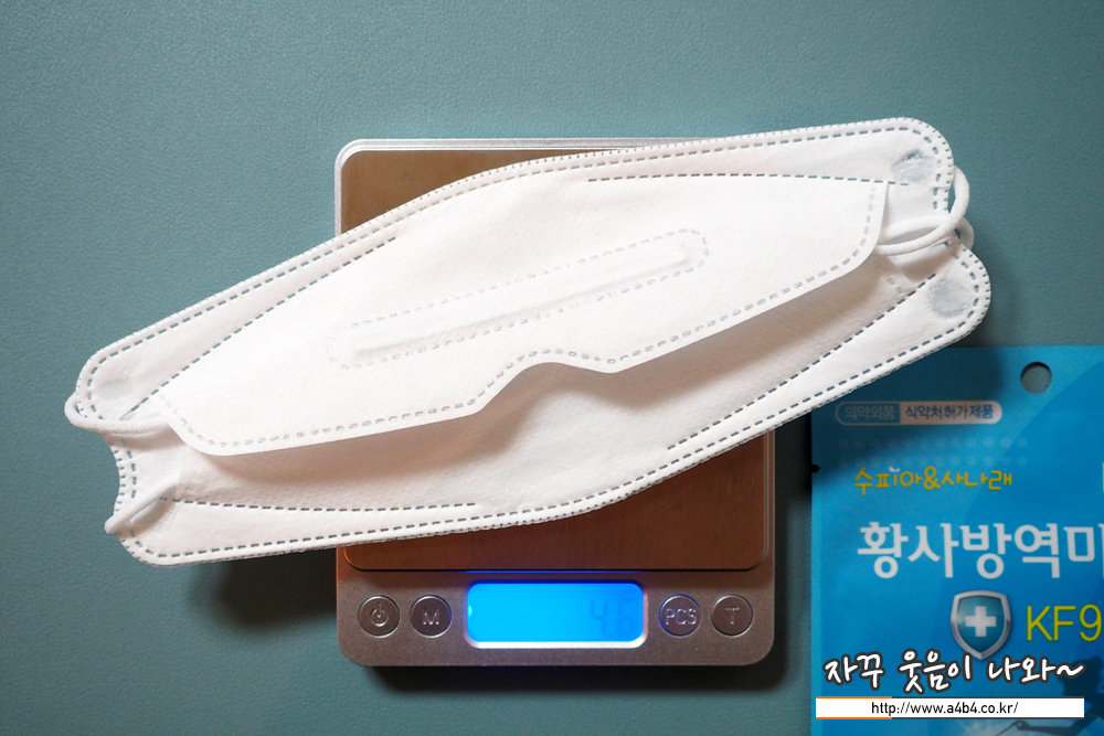 마스크 중량은 4.6그램으로 일반 KF94 입체형 마스크 중량을 보입니다.