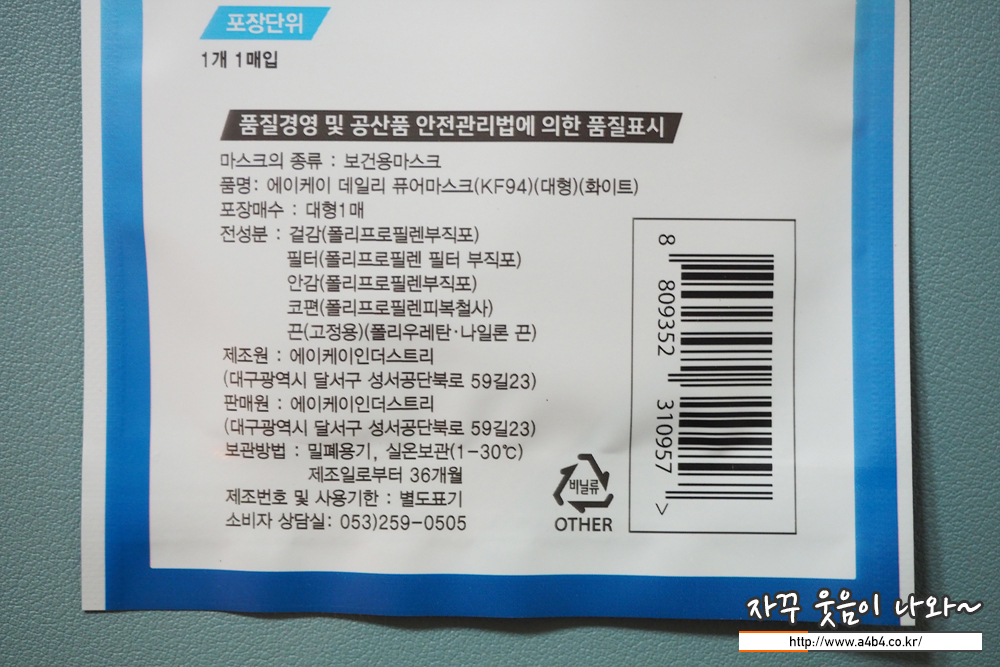 [3/3] 에이케이 KF94 데일리 퓨어 마스크 대형 착용감 및 장단점 후기