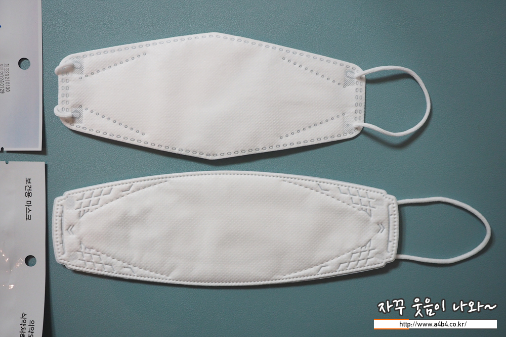 마스크 디자인은 3D 타입의 입체형 마스크로 각이 있는 테두리와 부직포 접착 문양이 강한 제품입니다. 조금은 독특한 디자인 처리 (디자인 부분은 글 '(2/3) 유명 3D타입 마스크와 비교'에서 자세하게 리뷰합니다.)