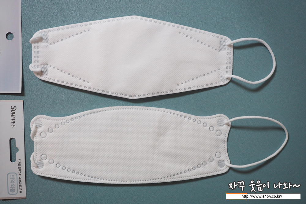 마스크 디자인은 3D 타입의 입체형 마스크로 각이 있는 테두리와 부직포 접착 문양이 강한 제품입니다. 조금은 독특한 디자인 처리 (디자인 부분은 글 '(2/3) 유명 3D타입 마스크와 비교'에서 자세하게 리뷰합니다.)