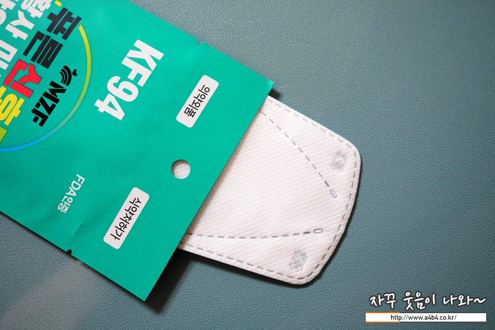 KK94 푸른 신호등 마스크는 4중필터 방식으로 조금 두께가있는 타입의 마스크입니다. 하드한 타입이며, 겉감은 드라이한 촉감을 보입니다. 마스크 착용핏은 무난한 편입니다.