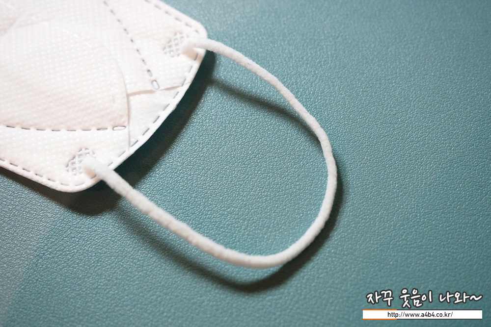 KK94 푸른 신호등 마스크는 4중필터 방식으로 조금 두께가있는 타입의 마스크입니다. 하드한 타입이며, 겉감은 드라이한 촉감을 보입니다. 마스크 착용핏은 무난한 편입니다.