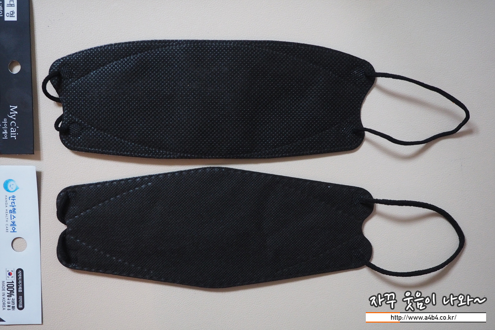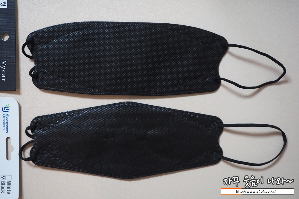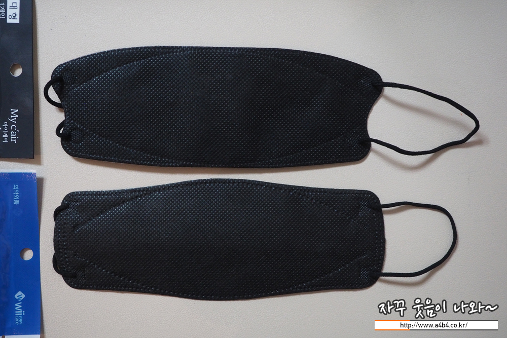 두 제품은 마스크 사이즈나 중량, 착용핏에서 큰 차이가 없는 제품입니다. 제가 보유한 두 제품에서는 검정색상이 약간 작고 이어밴드도 약간 짧아 보이지만 오차 범위여서 의미는 없어 보입니다. 그냥 색상만 다르고 동일한 제품으로...
