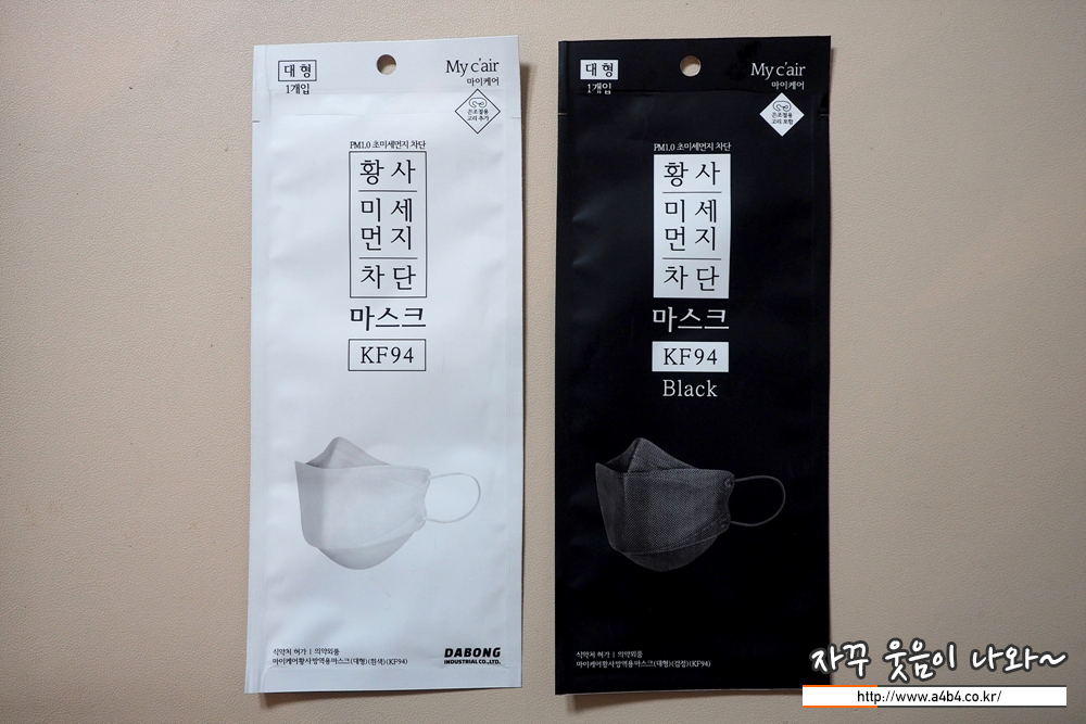마이케어 황사방역용 마스크 대형 흰색과 검정 비교