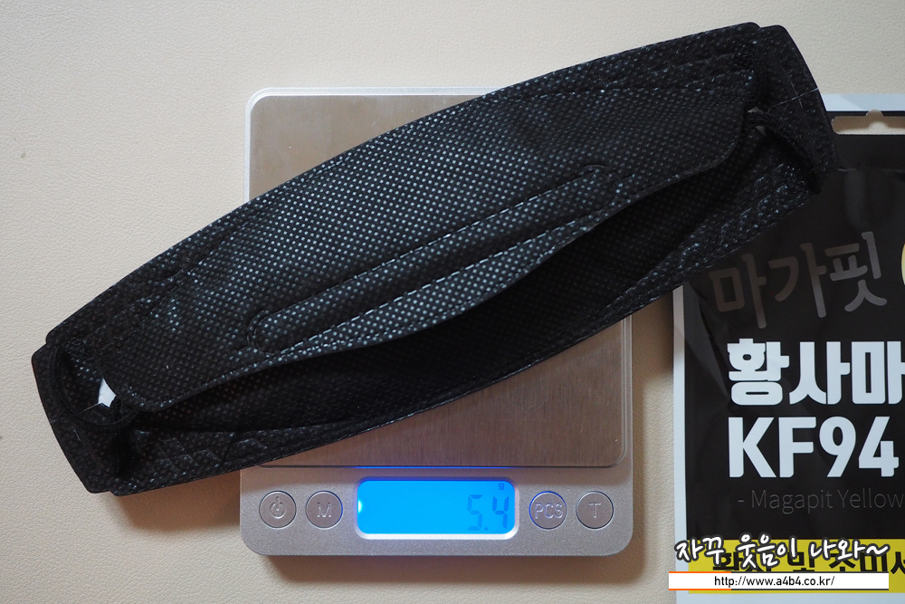 마가핏 황사방역마스크 블랙 대형 무게는 5.4g으로 대형 마스크 중에서는 약간 무거운 타입의 입체형마스크 입니다.