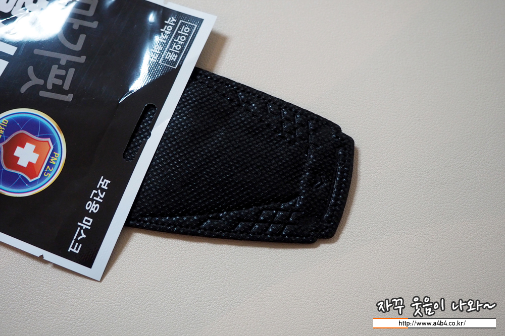 마가핏 황사방역마스크 블랙 대형 무게는 5.4g으로 대형 마스크 중에서는 약간 무거운 타입의 입체형마스크 입니다.