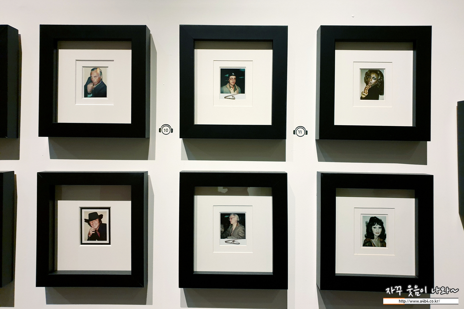 본인은 물론 유명인들의 폴라로이드 사진들이 전시된 공간...