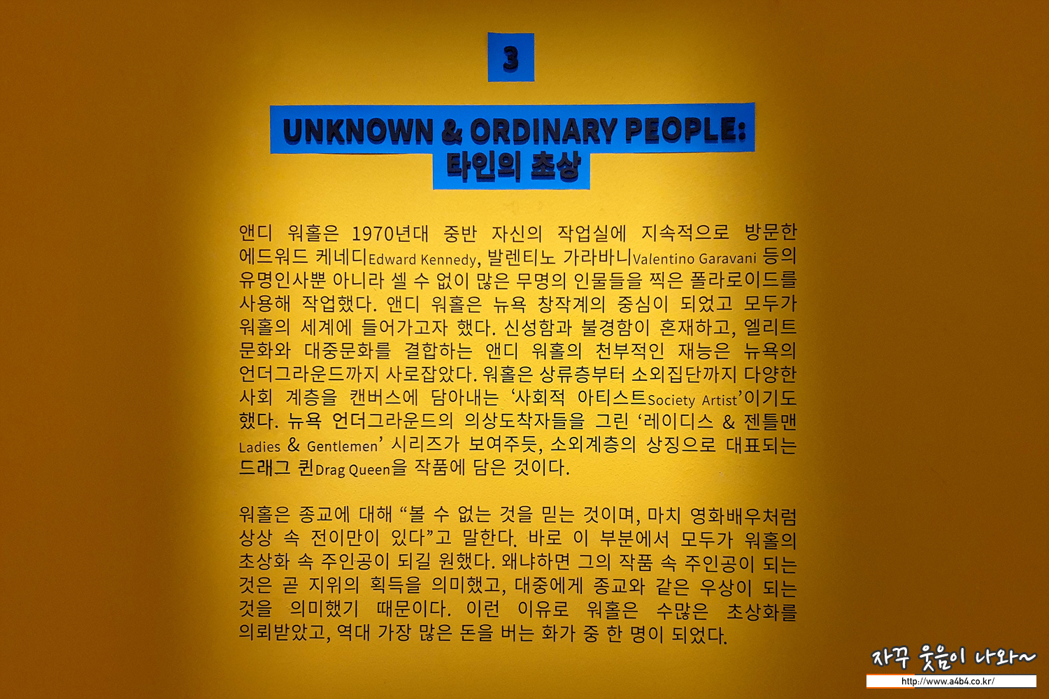앤디워홀이 작업한 미국의 일반인들과 소외계층 유명인을 만나볼 수 있는 공각