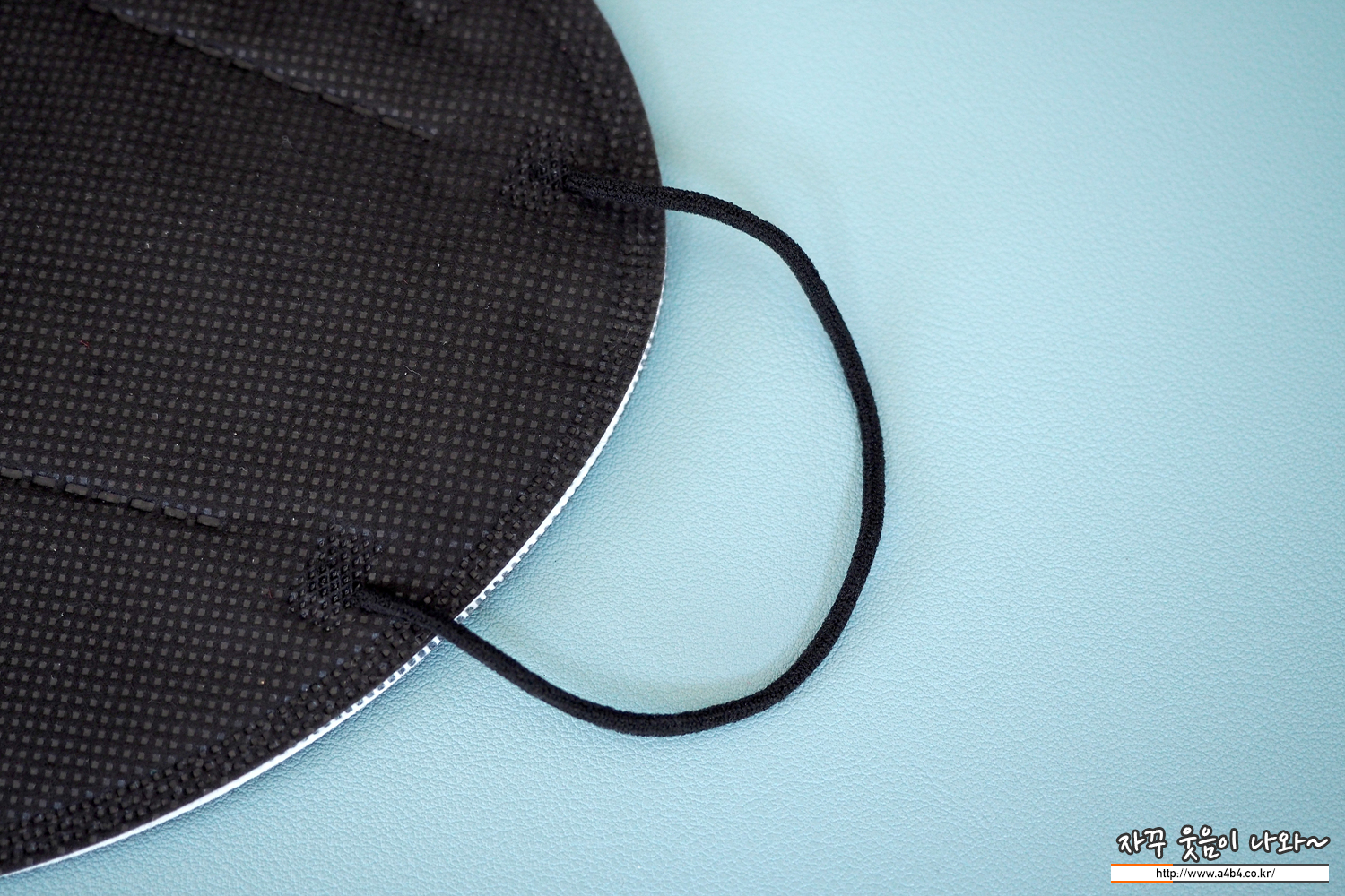 둥근 모양의 귀걸이끈은 마스크 앞 부분에 접착되어 있습니다. 귀걸이끈 탄력은 약간 짱짱한 타입으며, 하루가드 프리이엄 마스크의 귀걸이끈은 귀에 자극이 덜하는 납작한 타입의 귀걸이끈이 아닌 둥근 모양이 사용된 부분은 조금 아쉬운 부분입니다.