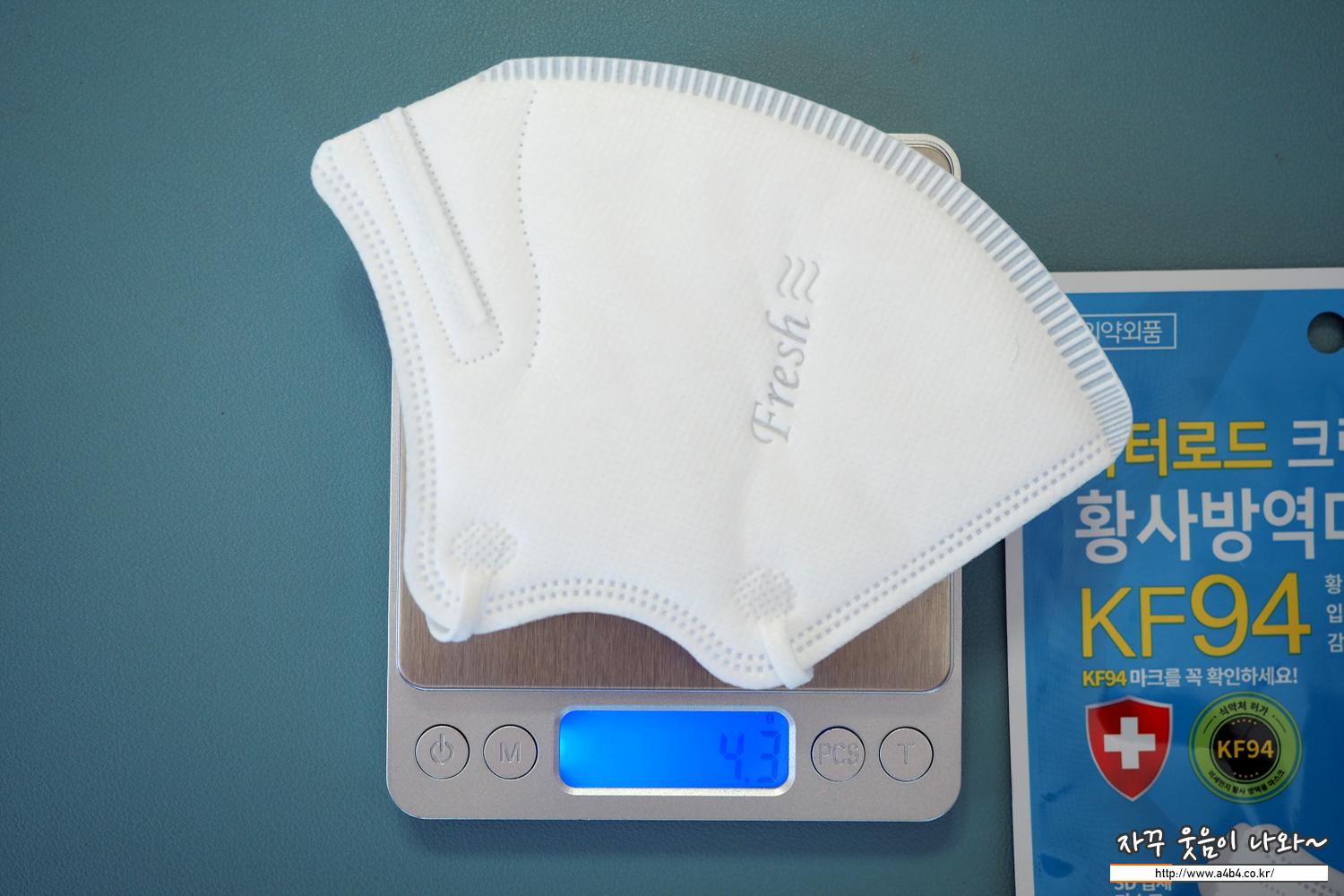 KF94 닥터로드 크린 대형 마스크 중량은 4.3그램으로 타사 새부리 대형 마스크에 비해서 조금 가볍습니다.