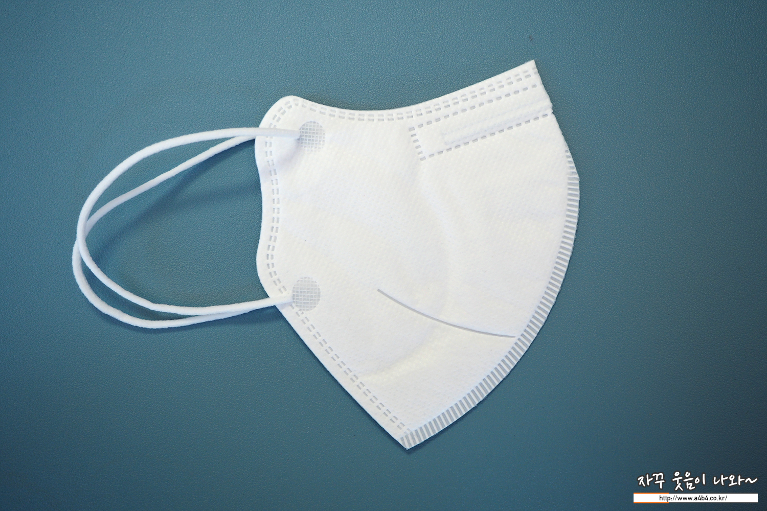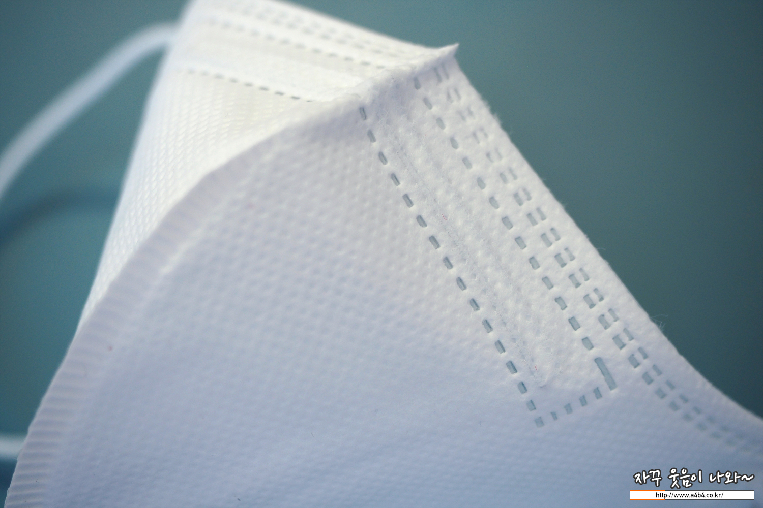 KF94 노아마스크 외피는 약한 패턴처리된 매끄러운 감촉의 부직포가 적용 되었습니다. 삼중 구조로 상당히 얇은 스타일의 마스크입니다. 얇다 보니 마스크 착용시에도 각이 딱 나오지는 않네요. 이 부분은 착용감 부분에서 자세하게 리뷰합니다.