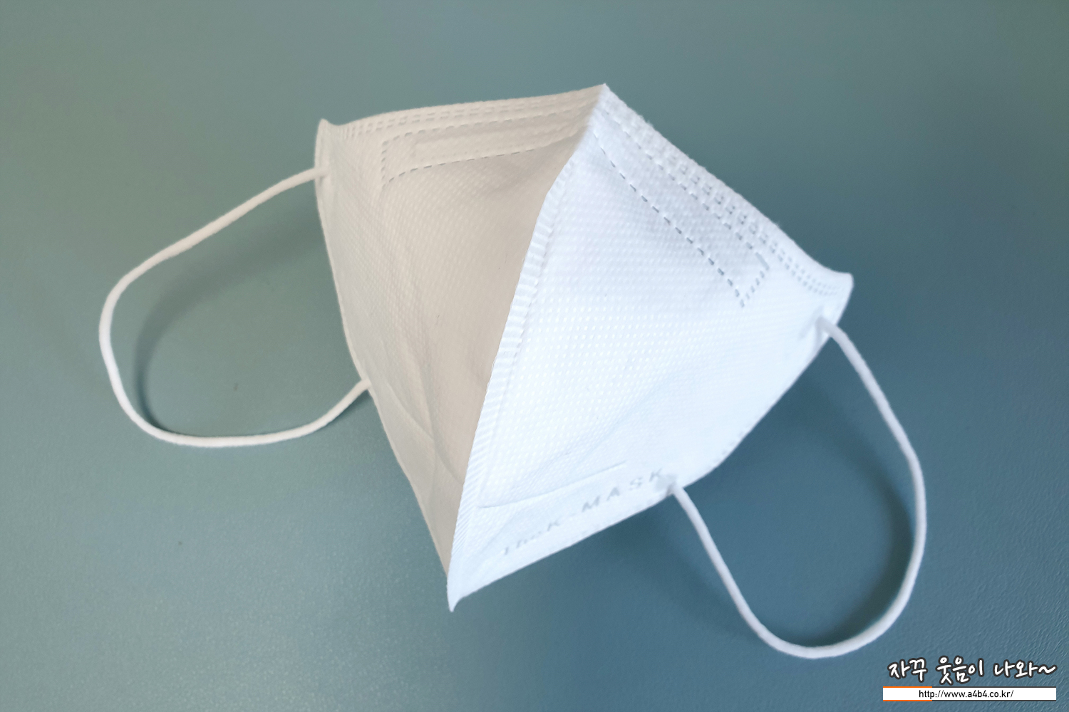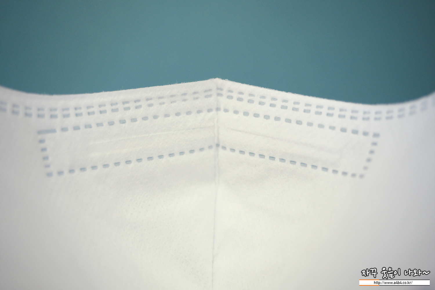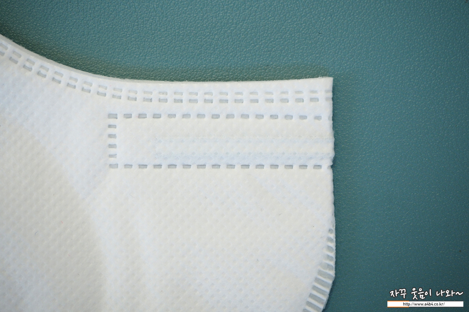 KF94 노아마스크 외피는 약한 패턴처리된 매끄러운 감촉의 부직포가 적용 되었습니다. 삼중 구조로 상당히 얇은 스타일의 마스크입니다. 얇다 보니 마스크 착용시에도 각이 딱 나오지는 않네요. 이 부분은 착용감 부분에서 자세하게 리뷰합니다.