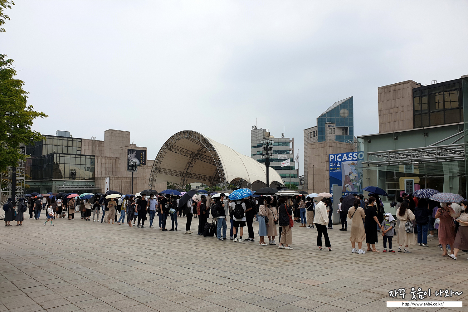 이번 피카소 전시회를 보기위해 주말 아침부터 예술의 전당을 찾은 긴 줄. 꼬불꼬불 뱀과 같이 광장 전체를 매꾸고 있네요. 여기에 비까지 오니 답이 없는 상황... 포기 하고 다음에 올까 잠시 고민합니다.