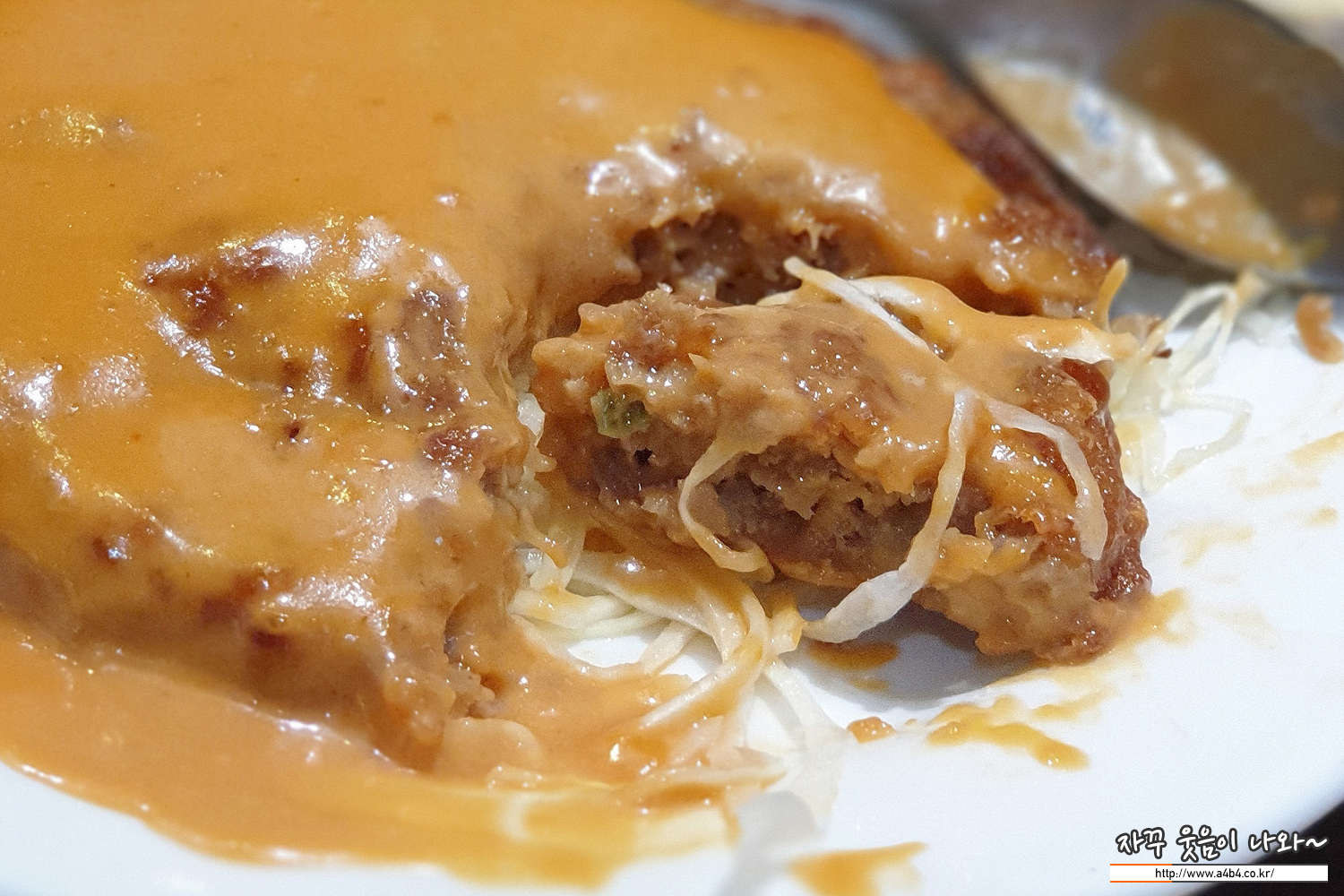 떡갈비가 생각보다 크도 두툼하게 나왔네요. 돈까스와 떡갈비의 중간정도? 모양은 돈까스, 맛은 떡갈비라고 할까요