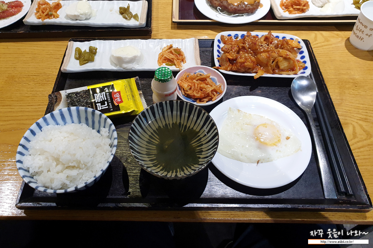 계란 후라이와 김 등... 반찬은 무료로 리필이 가능합니다.