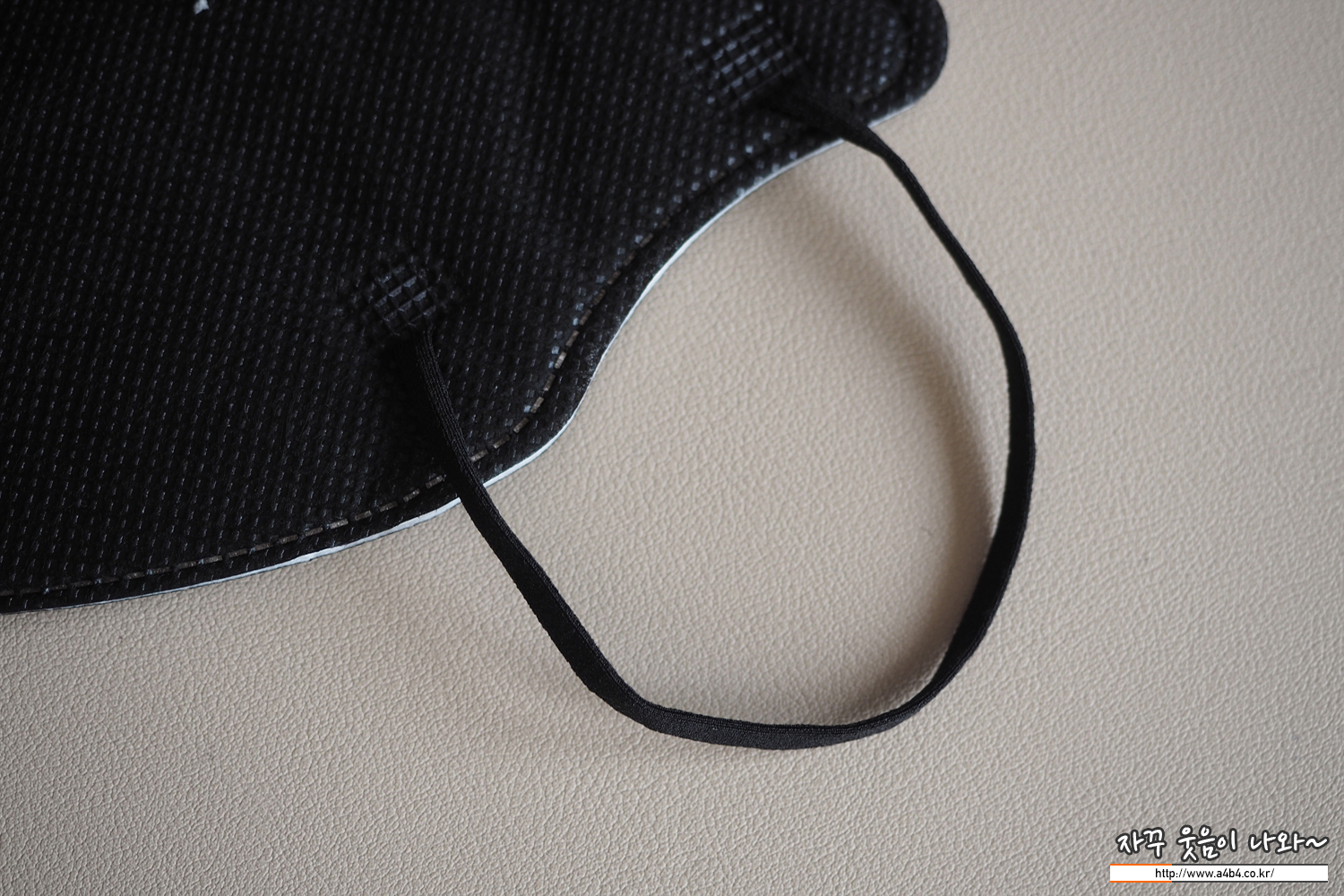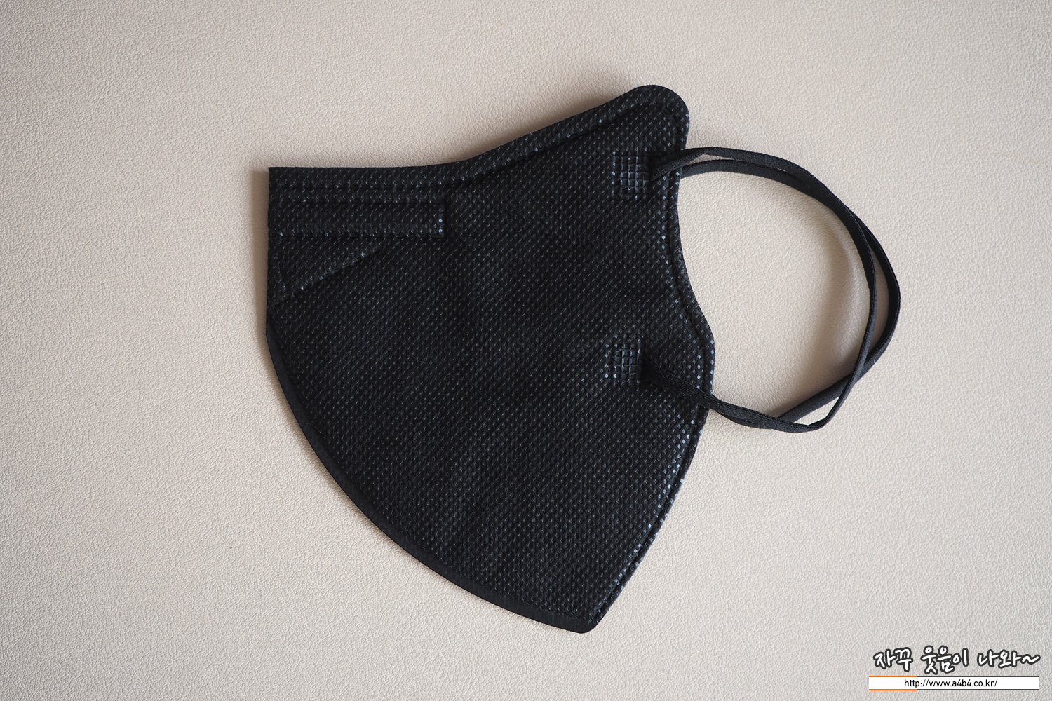 칼국수끈으로 불리는 납작한 디자인의 귀걸이끈이 마스크 전면에 접착되어 있으며, 귀걸이끈 탄성은 조금 강한 타입입니다.