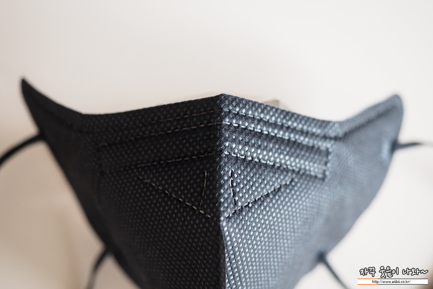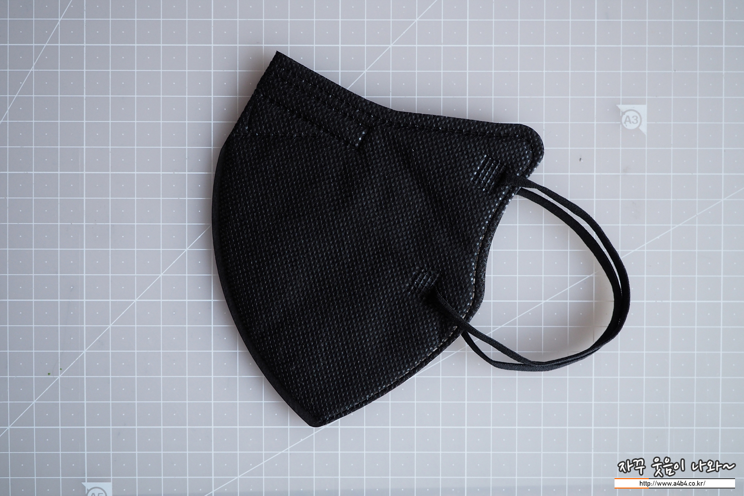 칼국수끈으로 불리는 납작한 디자인의 귀걸이끈이 마스크 전면에 접착되어 있으며, 귀걸이끈 탄성은 조금 강한 타입입니다.