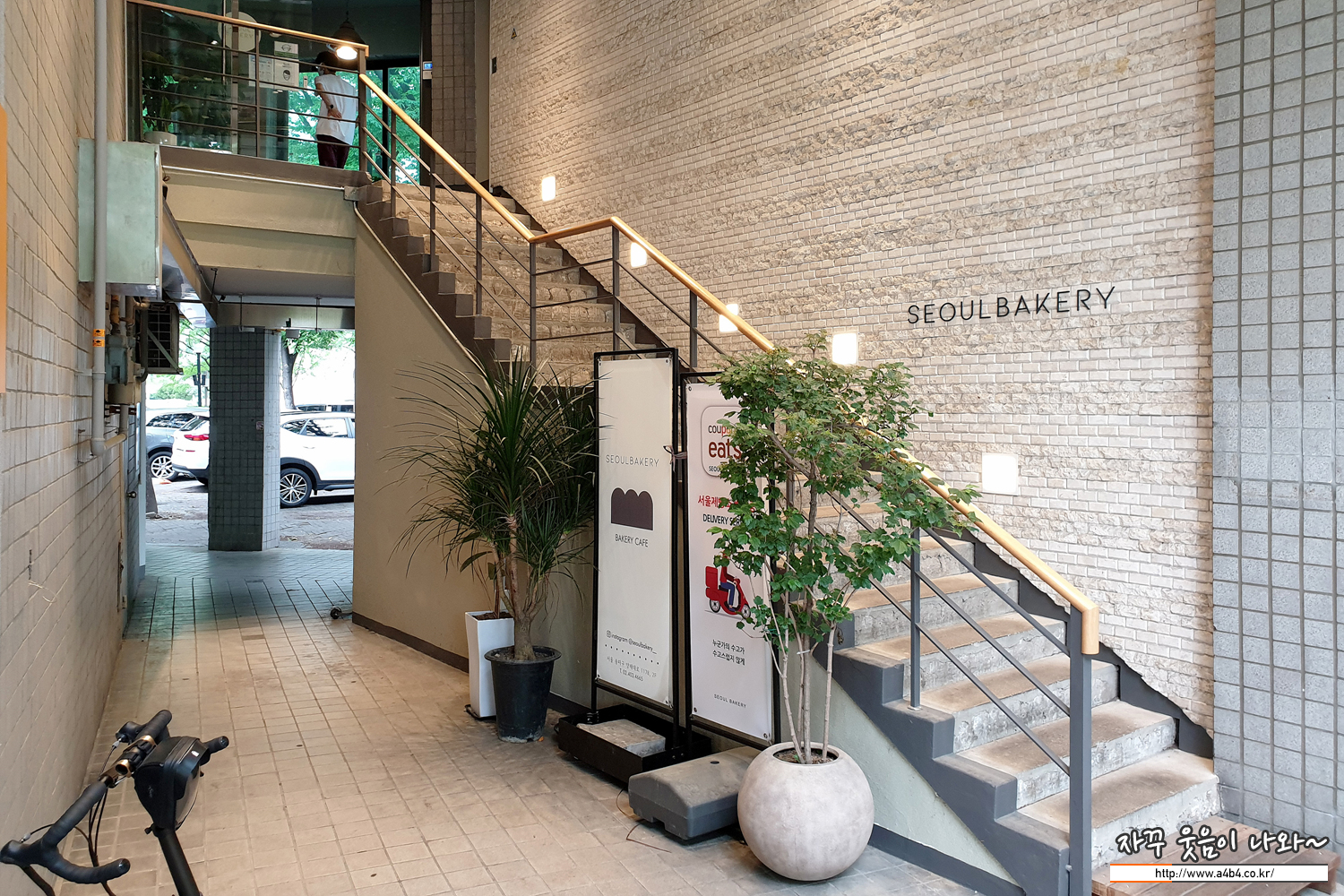 상가 오른쪽에 있는 이 계단을 이용하시면 서울 베이커리 본점에 방문하실 수 있습니다.
