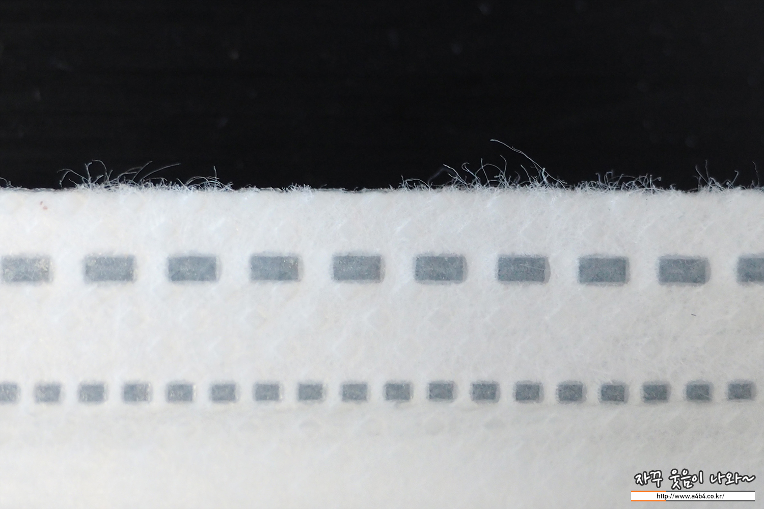 (1) 아래 사진처럼 마스크 끝 부분이 안쪽으로 말리면서 얼굴을 자극하네요. 장시간 착용하고 있으면 자극이 좀 있습니다. 민감하신 분들은 상당히...