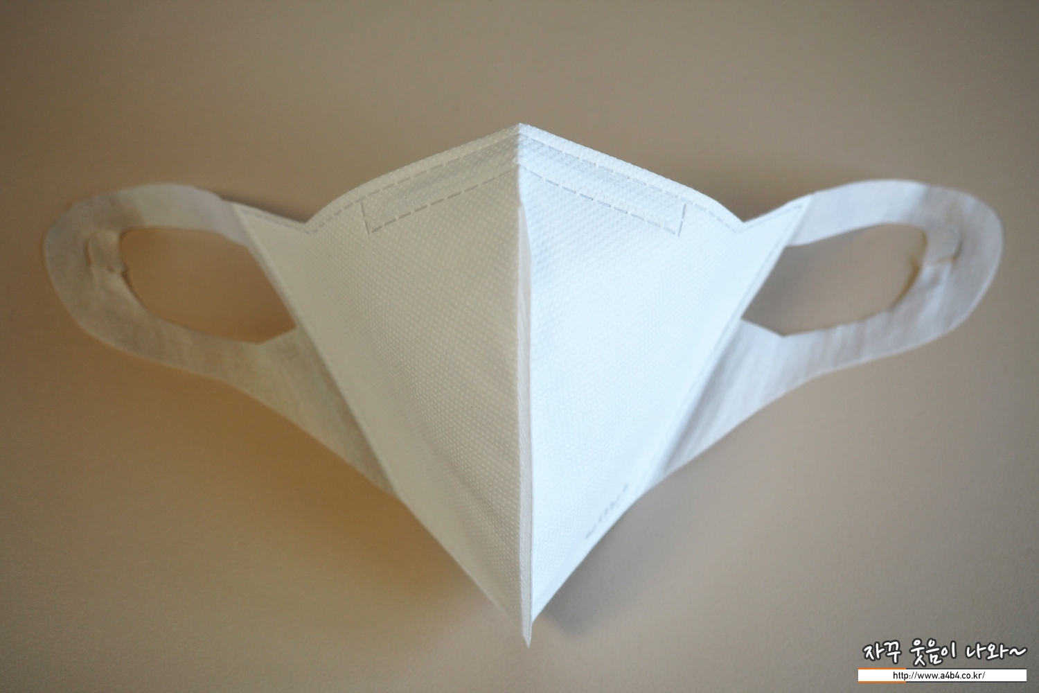 미마 마스크 모든 모델에는 사진과 같이 넙적한 디자인의 탄성 부직포가 이어밴드로 사용되었습니다. 최근에는 유사한 디자인의 제품들이 몇 몇 보이지만, 사실상 미마 마스크만의 고유 디자인으로 불 수 있습니다.