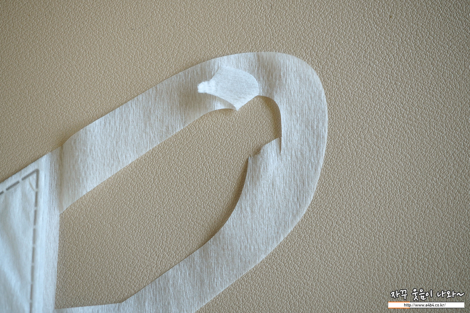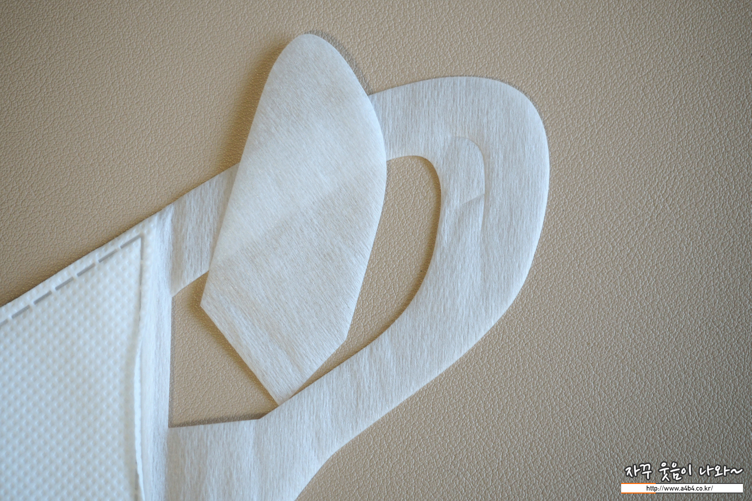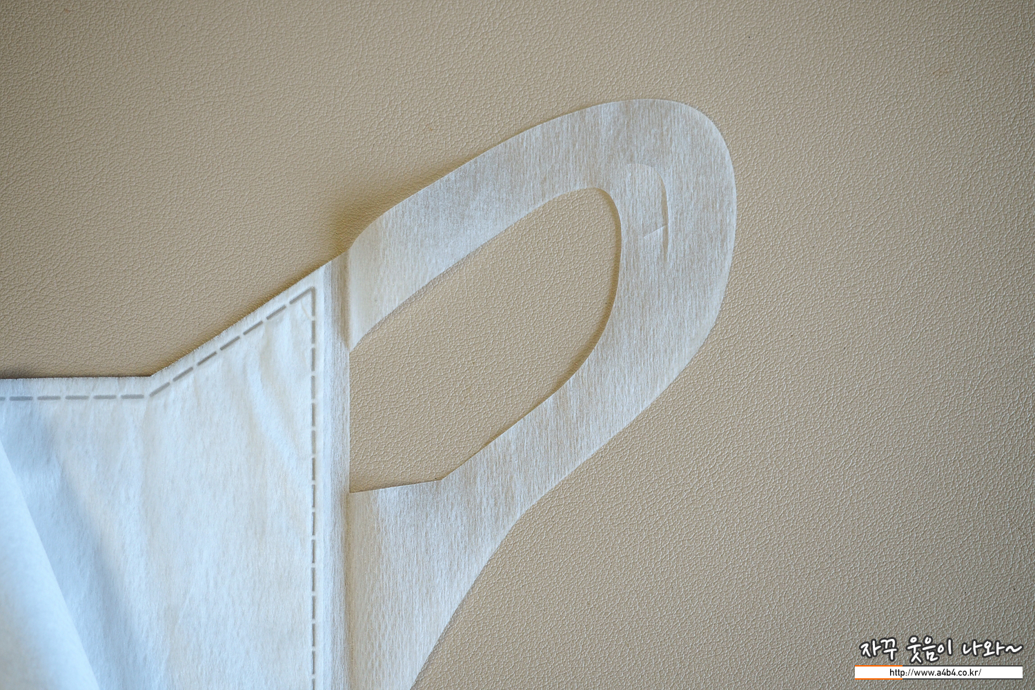 미마 마스크 모든 모델에는 사진과 같이 넙적한 디자인의 탄성 부직포가 이어밴드로 사용되었습니다. 최근에는 유사한 디자인의 제품들이 몇 몇 보이지만, 사실상 미마 마스크만의 고유 디자인으로 불 수 있습니다.