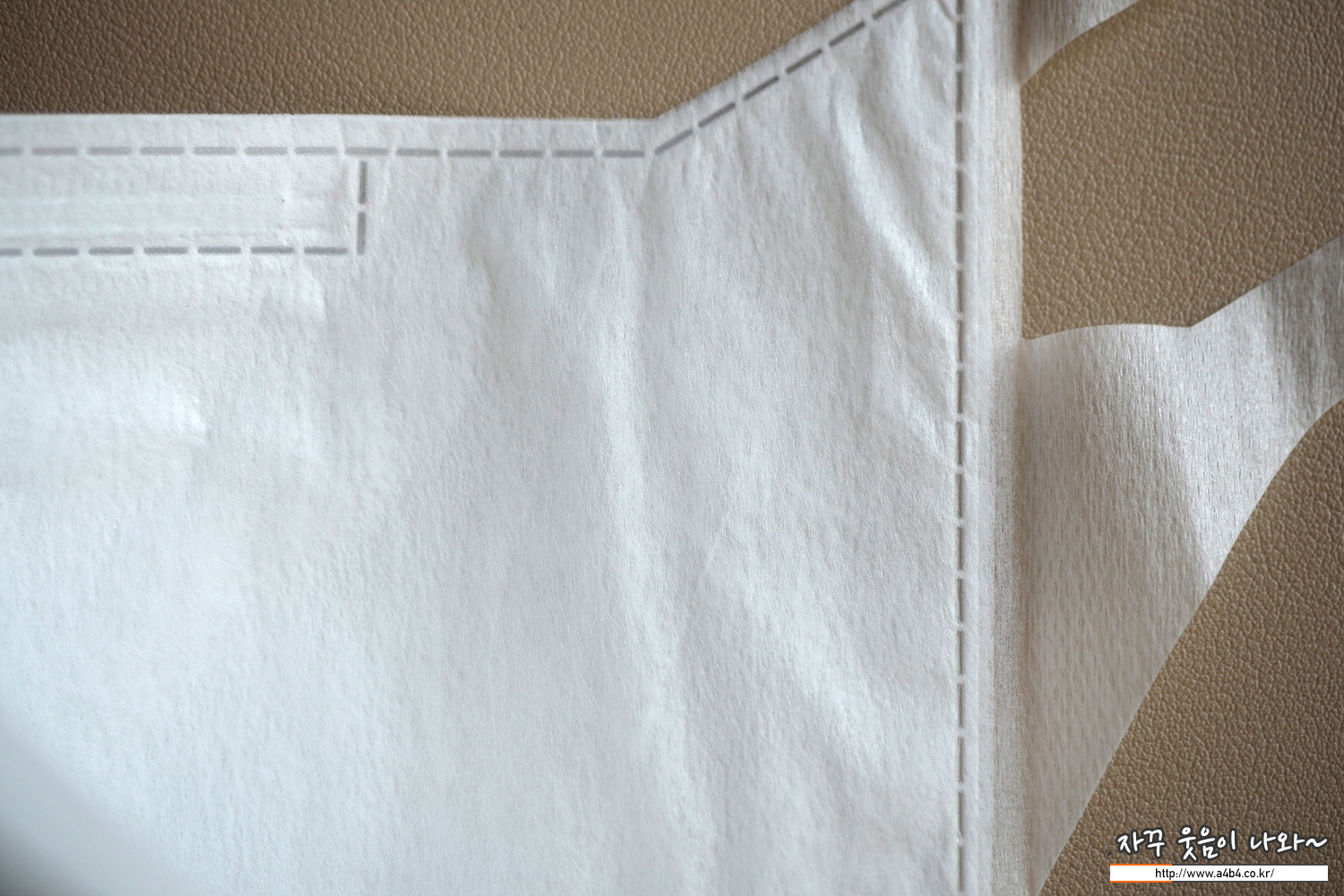 미마 보건용 마스크 KF94 대형 내피는 매끈한 감촉의 부직포가 안감으로 적용되었습니다. 마스크에 약품 냄새나 보푸라기는 생기지 않으며, 하루종일 사용해도 얼굴이 가렵거나 간지러운 피부 트러블은 발생하지 않았습니다.