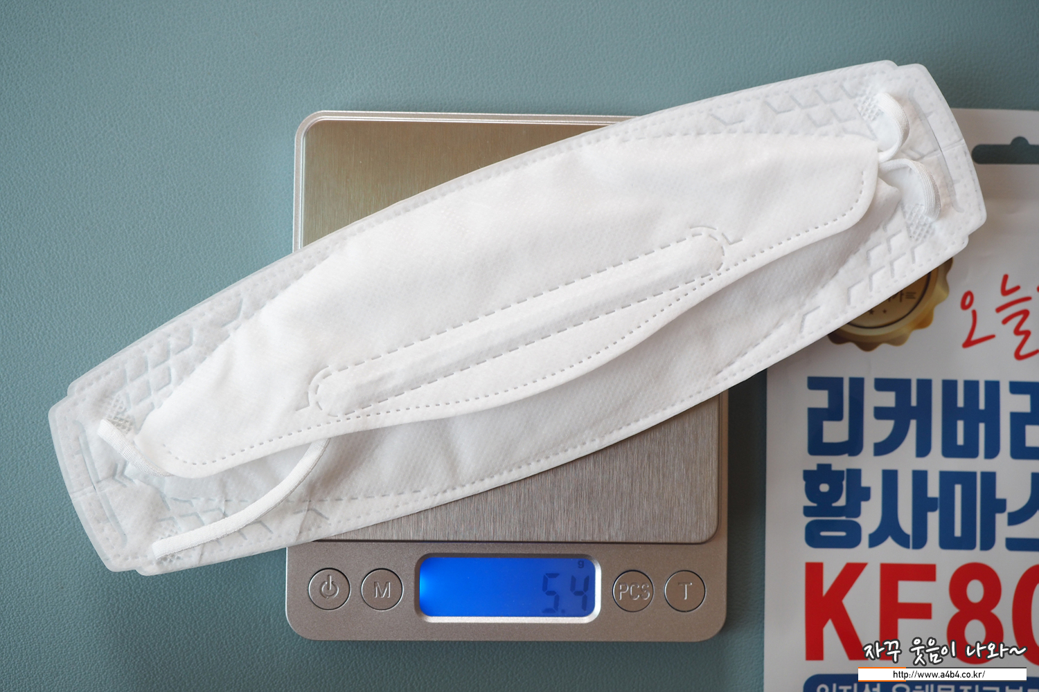마스크 중량은 5.5그램으로 KF80 대형사이즈 마스크 중에서는 중량이 좀 나가는 마스크입니다.