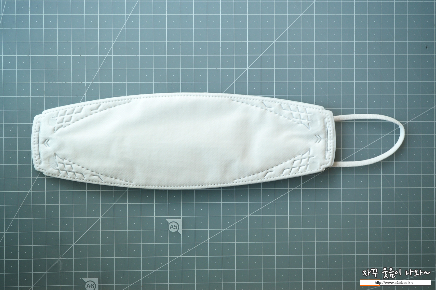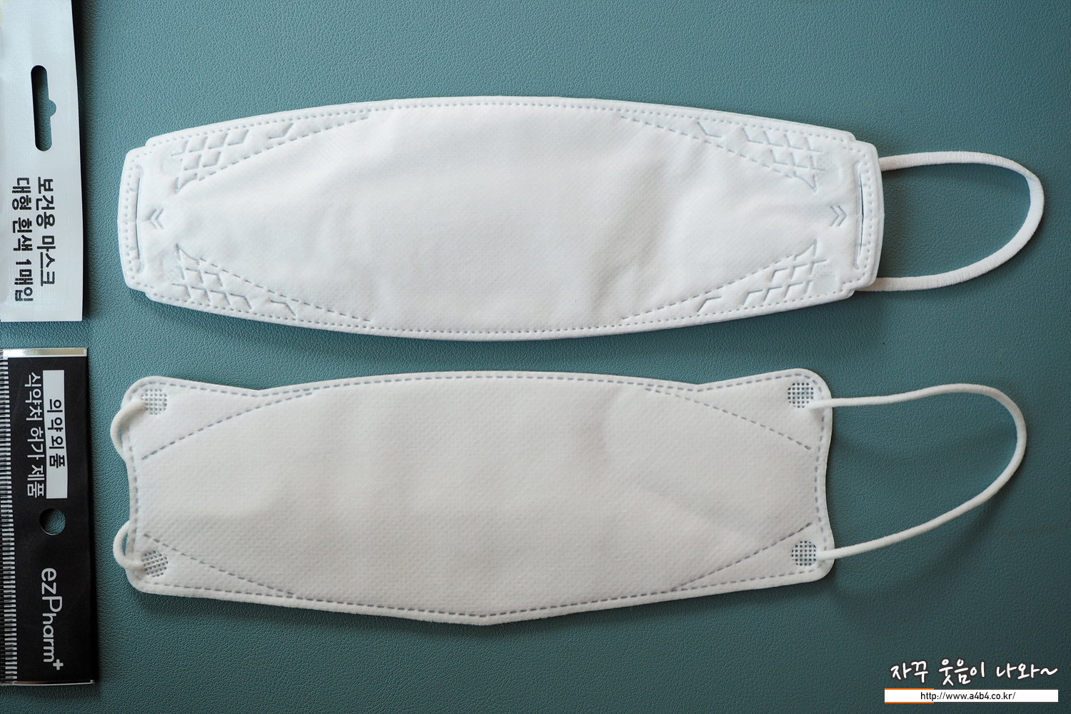 마스크 사이즈는 가로 약 22cm, 새로 약 7cm로 일반 사이즈의 대형 마스크에 비해 가로는 1cm 정도 길고, 세로는 1cm 정도 작을 사이즈를 보입니다.