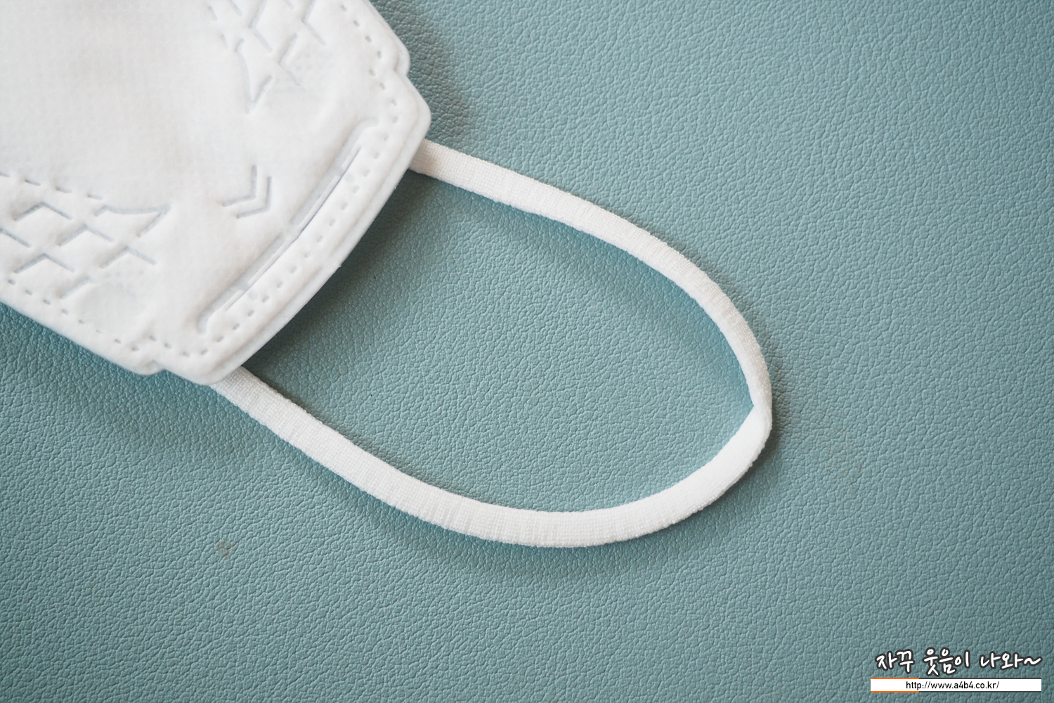 리커버리 마스크 KF80은 납작한 디자인의 귀걸이끈이 적용 되었습니다. 귀걸이끈 탄성은 조금 강한 타입으로 끈조절이 가능한 마스크입니다. 다만 끈조절이 가능한 마스의 귀걸이끈 길이로는 조금 아쉽네요. 조금 더 여유있게 뺐으면...