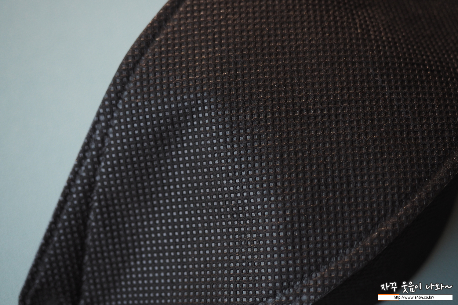 테라크린 마스크 블랙은 도트 처리된 블랙 색상의 부직푸가 사용되었으며, 드라이한 촉감을 주고 있습니다. 제품은 KF94 마스크 중에서는 얇은 타입을 보이지만 착용핏은 무너지지 않고 무난합니다. 컬러 마스크의 중요한 요소인 블랙 색상 발색은 약한 유광 타입으로 무난한 발색을 보입니다.