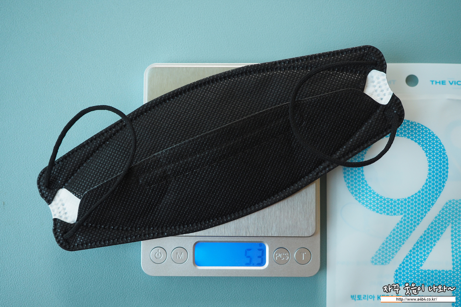 Kf94 빅토리아 마스크 블랙 대형 무게는 5.3그램으로 대형 입체형 마스크 중에서 약간 무거운 타입입니다.