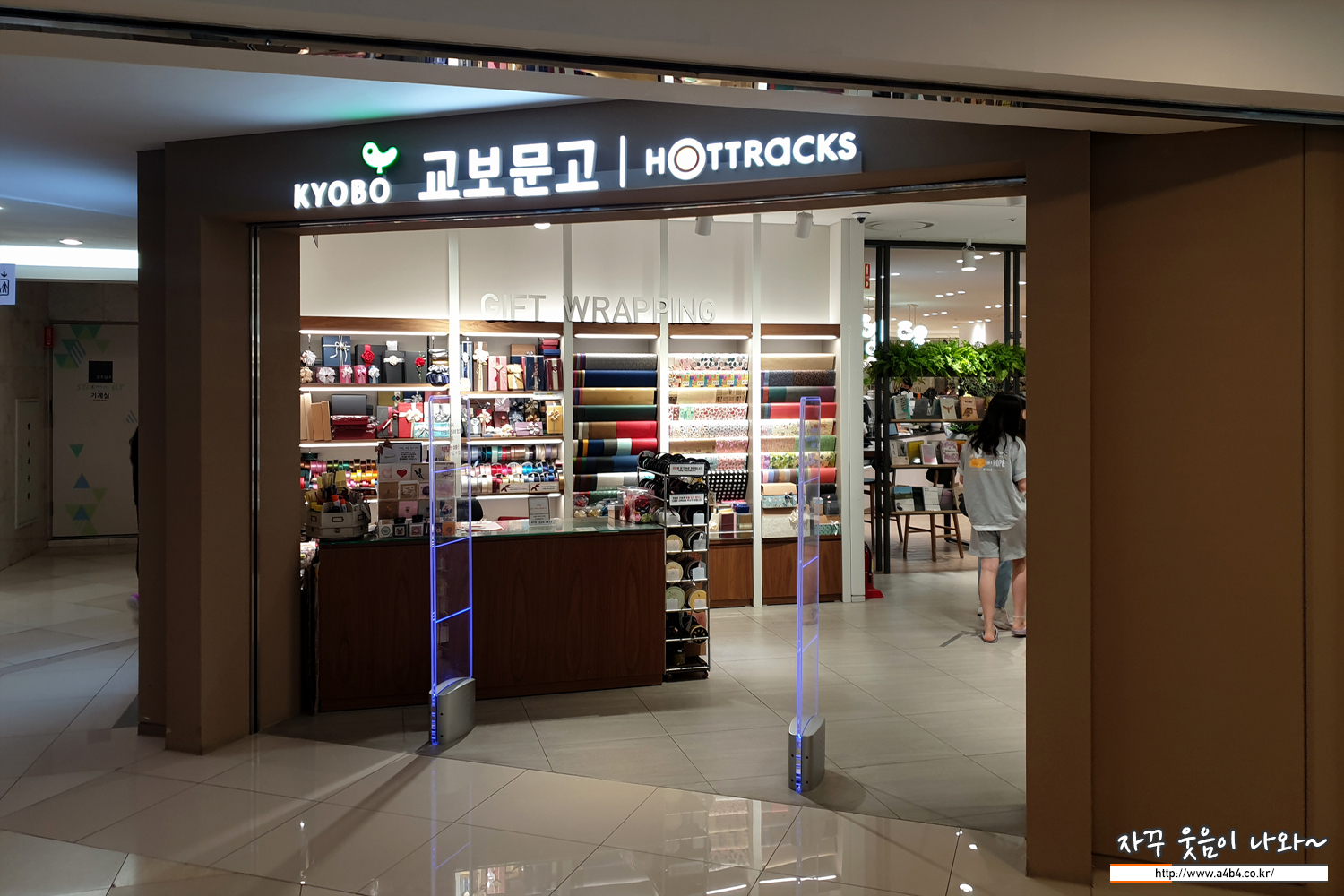 교보문고 잠실점의 모습입니다. 이외에도 핫트랙스가 입점해 있어 책과 문구류, 소형 전자제품 구매가 가능합니다.