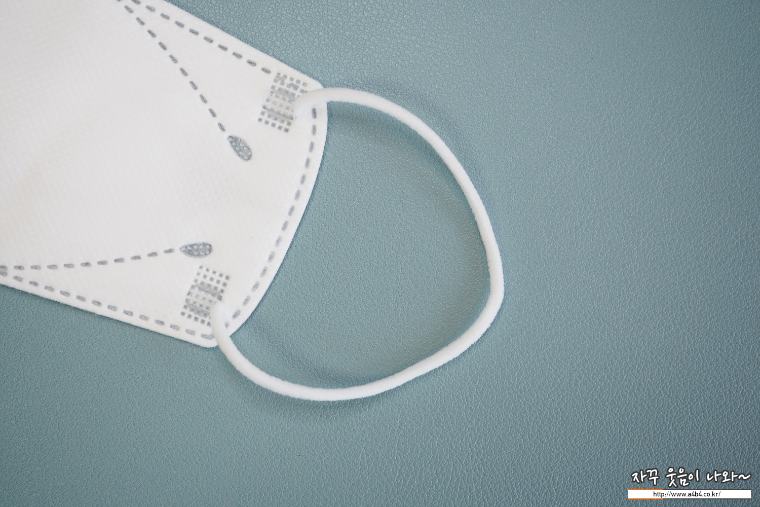 스템코 마스크 귀걸이끈은 둥근모양으로 마스크 앞부분에 접착되어 있습니다. 처리는 무난하며, 귀걸이끈 탄성은 일반적인 수준을 보여줍니다.