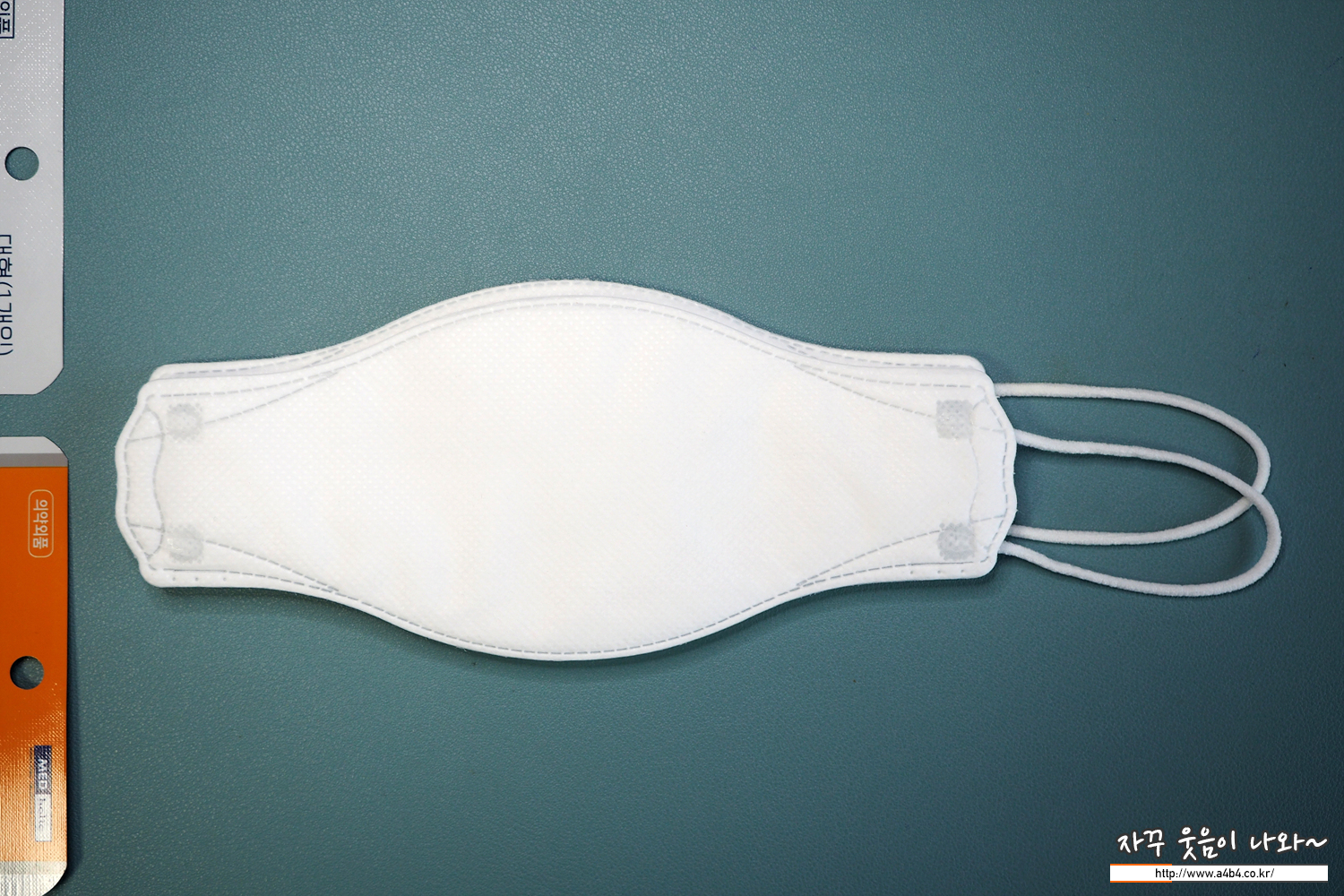 성상 1. 흰색 또는 검정색의 3단 가로 접이식 부직포 마스크로, 코부위에는 코편이 있고, 양측면에는 탄력성이 있는 흰색 또는 검정색의 끈이 부착되어 있다. 2. 흰색 또는 검정색의 3단 가로 접이