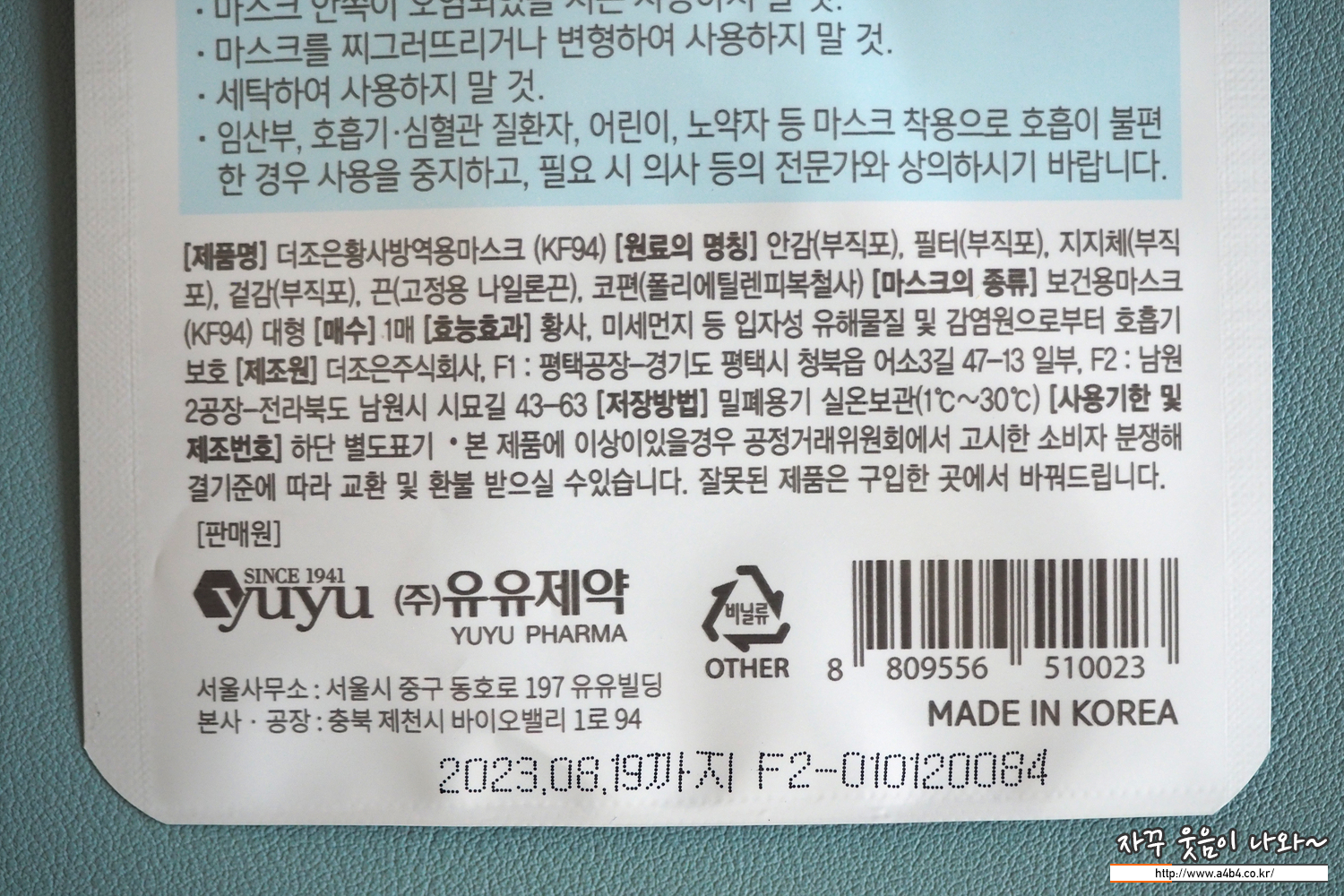 오랜만에 제약회사에서 유통하는 마스크 리뷰입니다. 지금까지 대부분의 제약회사 마스크가 기존 유통되는 마스크에 패키지만 바꾼 OEM 성격의 제품이 많아 실망 했는데요. 과연 유유제약 마스크 KF94 대형은 어떨지...