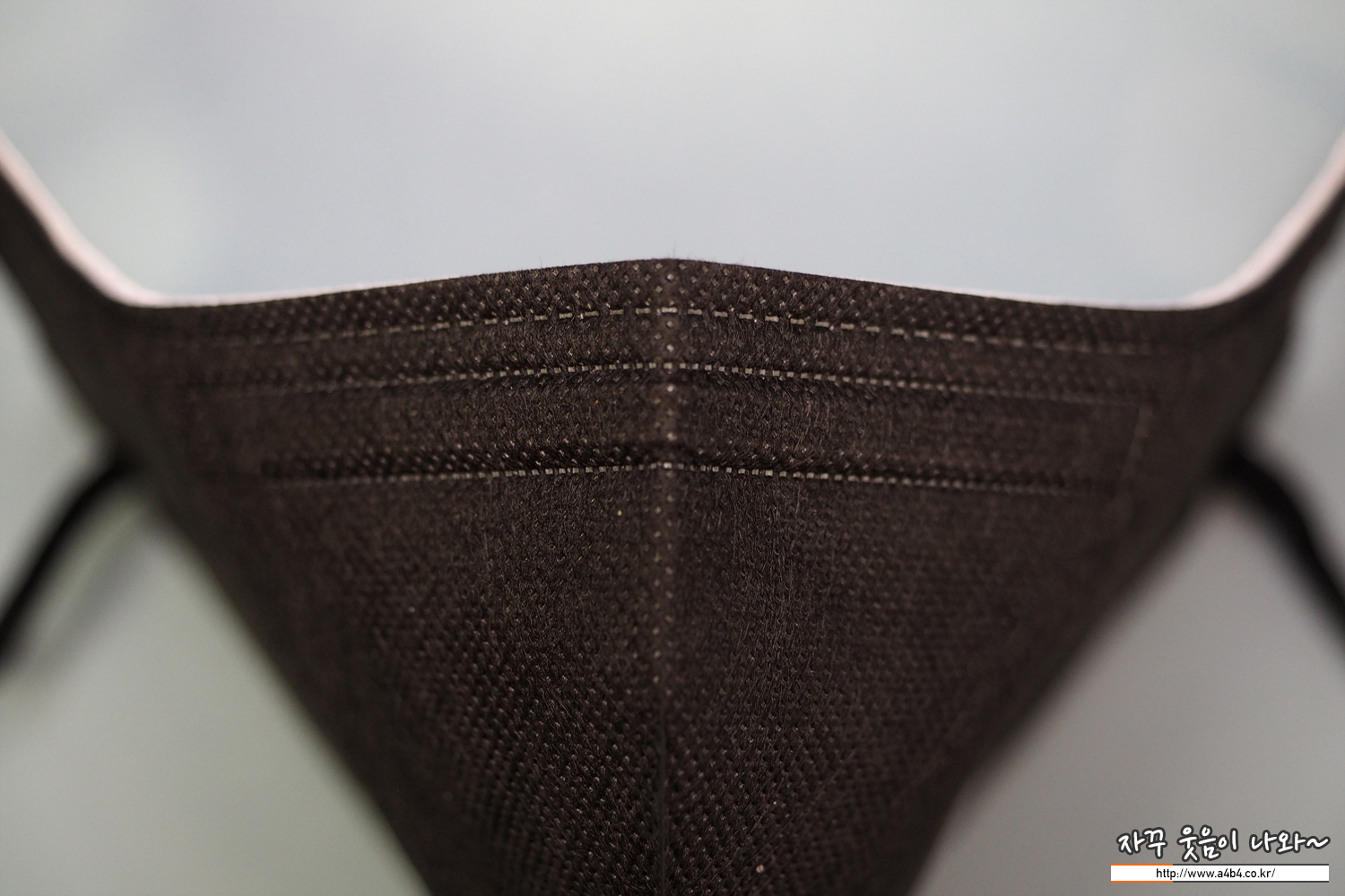 아에르 스포츠 베이직 보건용 마스크 같감은 드라이한 촉감의 부직포가 사용 되었습니다. 약한 도트 처리가 되었으며 블랙 색상의 발색은 무광에 가까운 타입으로 깔끔하고 차분한 발색을 보입니다. 4중구조로 두께감이 조금 느껴지는 착용감을 보이는 제품입니다.