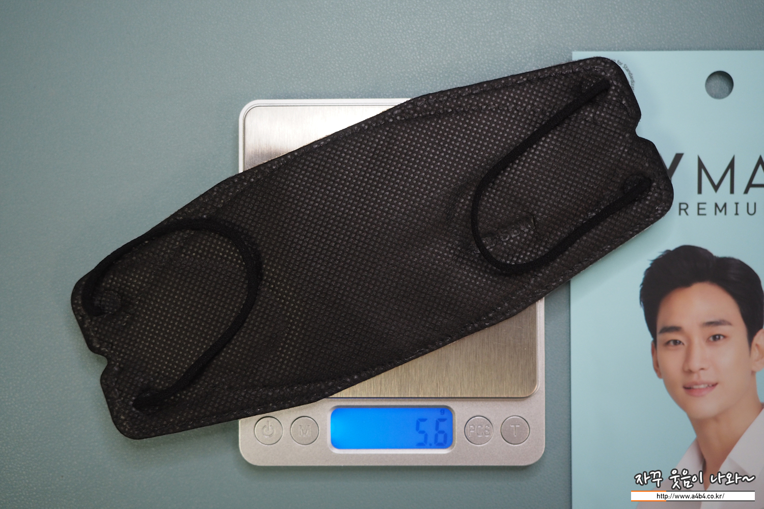 KF94 트라이마스크 블랙 대형 중량은 5.6g 으로 대형사이즈 마스크 중에서는 중량이 조금 나가는 타입입니다.