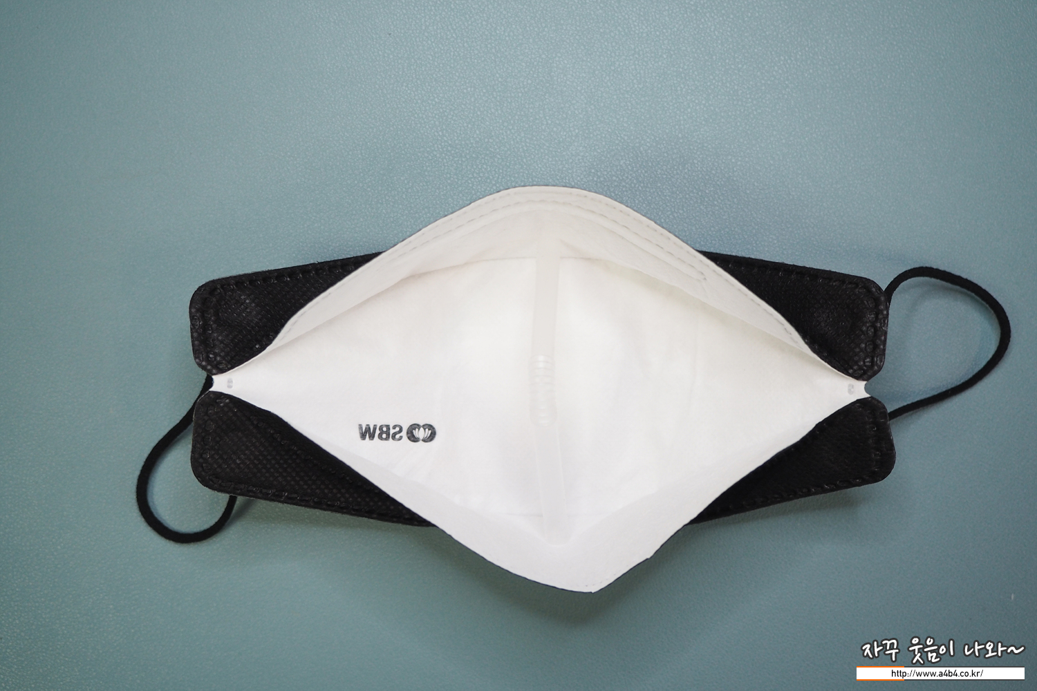 에스비더블유 마스크 디자인은 일반적인 가로 3단접이식 3D스타일의 모양을 보입니다. 약간 각진 타입으로 외형은 조금 여유 있는 느낌을 주는 제품입니다.