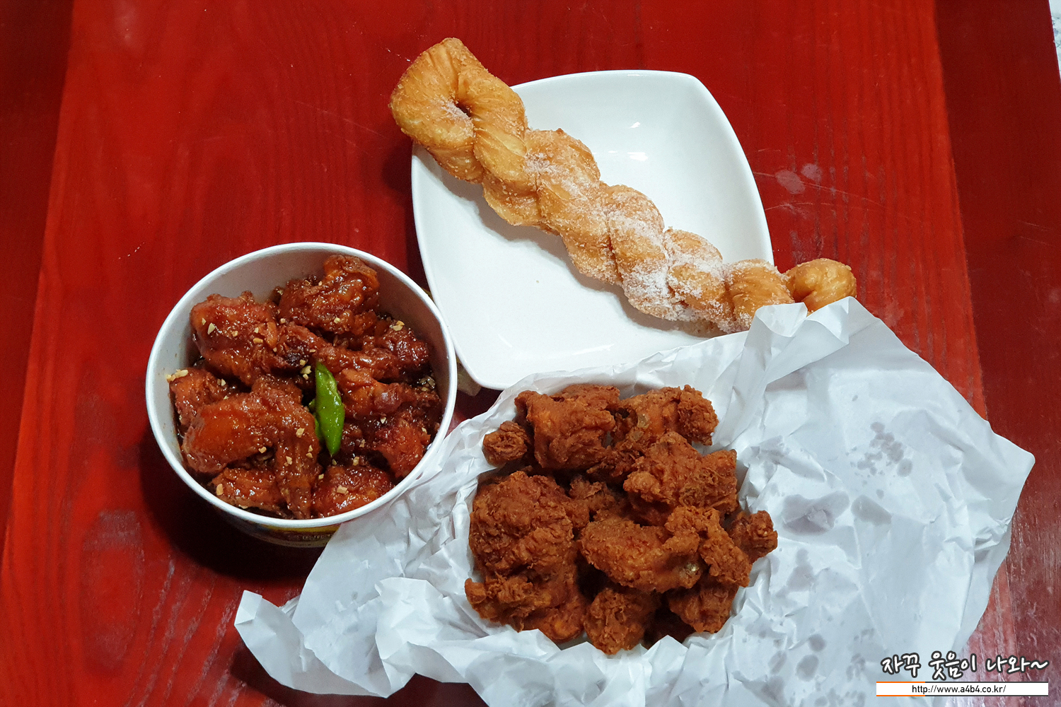 저는 원조 신포닭강정에서 후라이드 중자, 닭강정 중 사이즈를 구입했습니다. 양과 크기는 대략 이정도...
